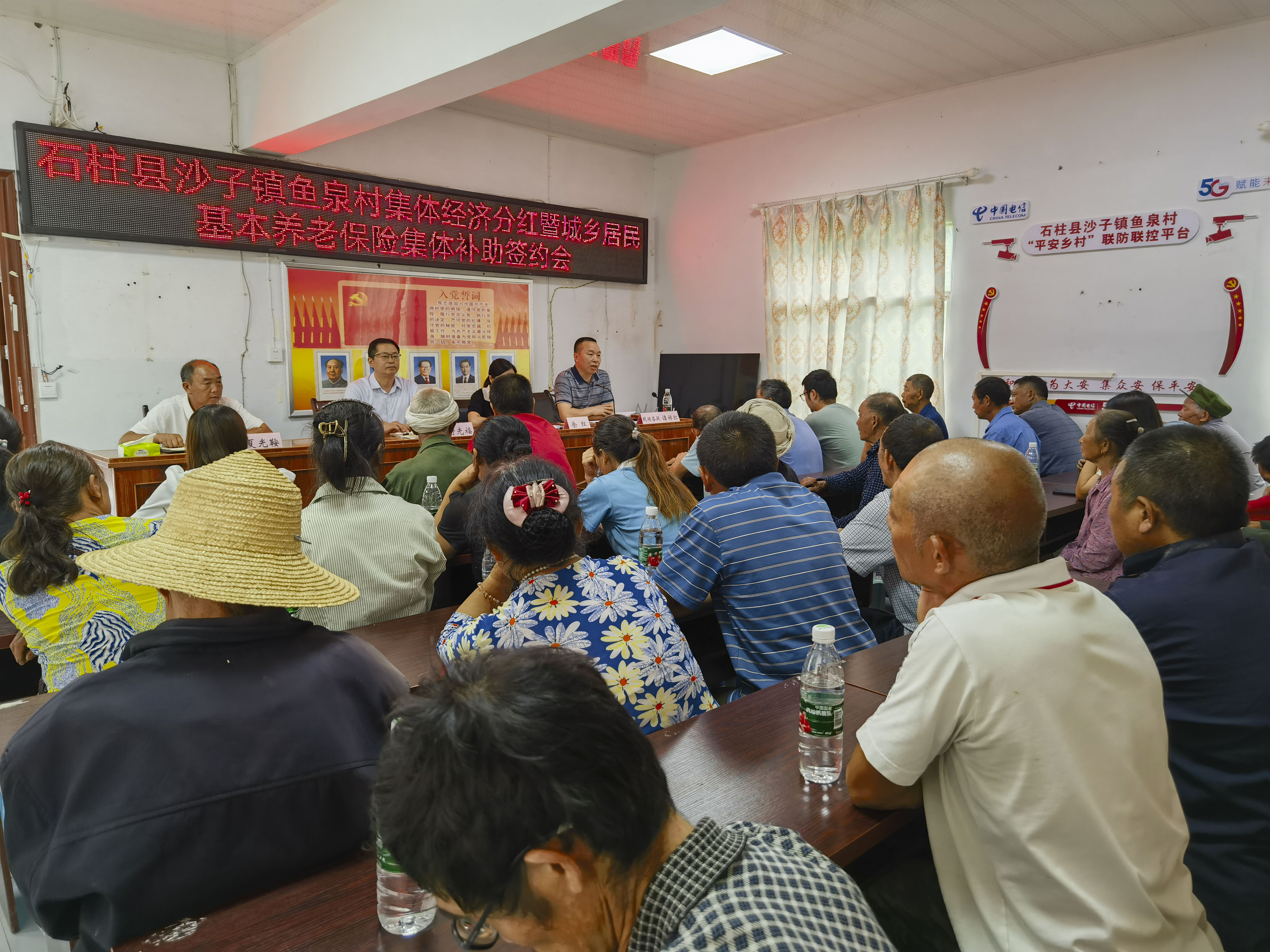 近日,沙子镇鱼泉村开展城乡居民养老保险集体补助签约仪式,83户签订集体补助承诺书,共计8621元集体补助计入城乡居民养老保险个人账户。