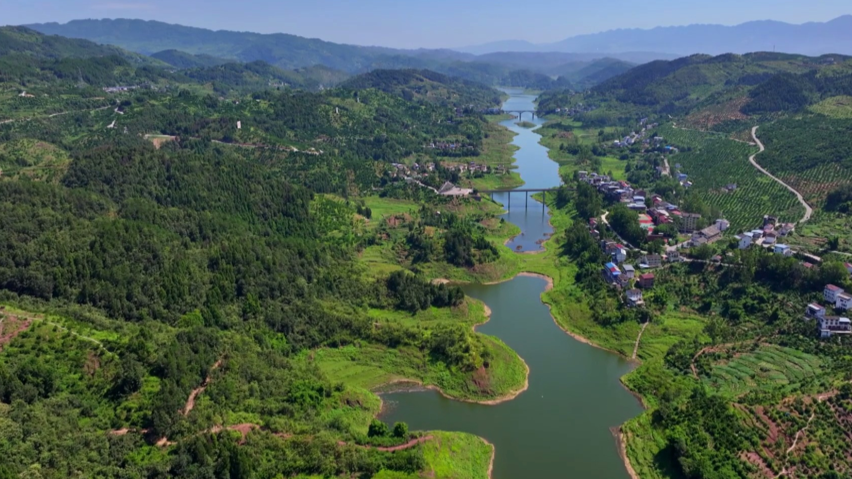 初秋时节,长江支流忠县涂家河段草木葱茏,呈现出一江碧水、两岸青山的绝美画卷。