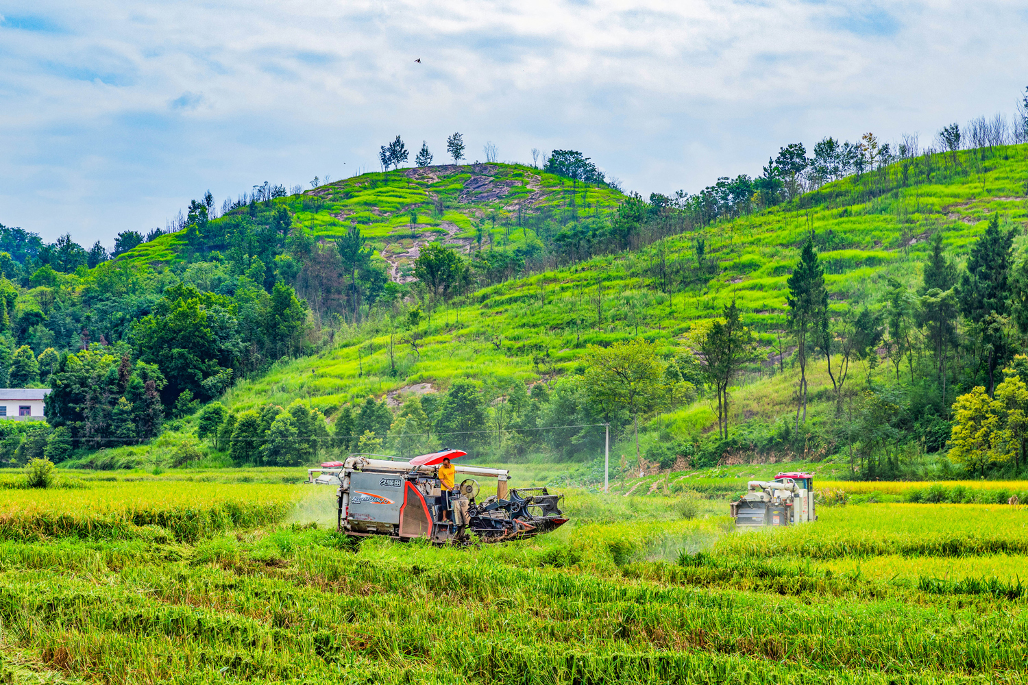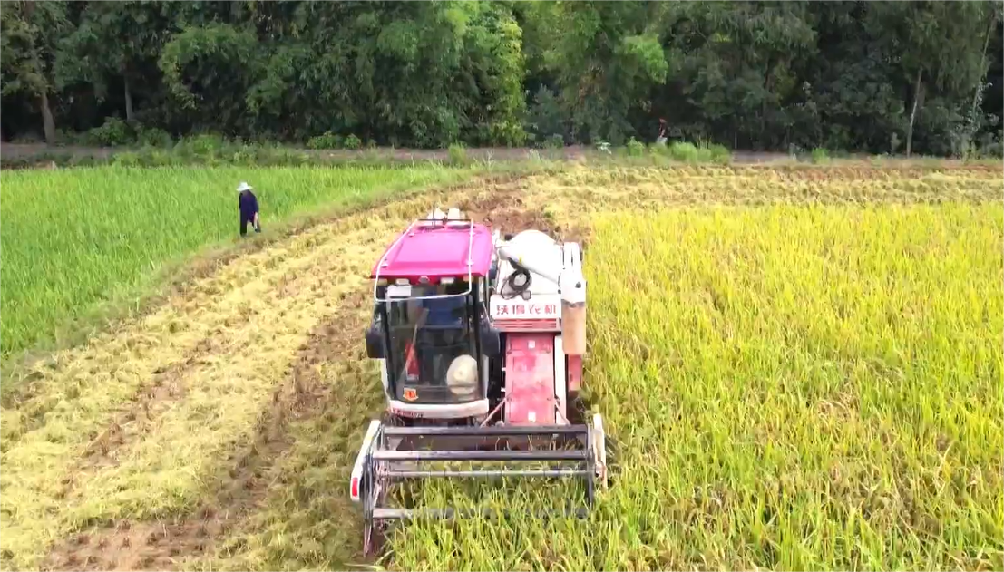 再生稻指的是头季水稻收割后,利用稻桩重新发苗长穗,可以再收一季。这几天垫江县中稻进入成熟期,当地积极开展机收作业,加紧抢收。