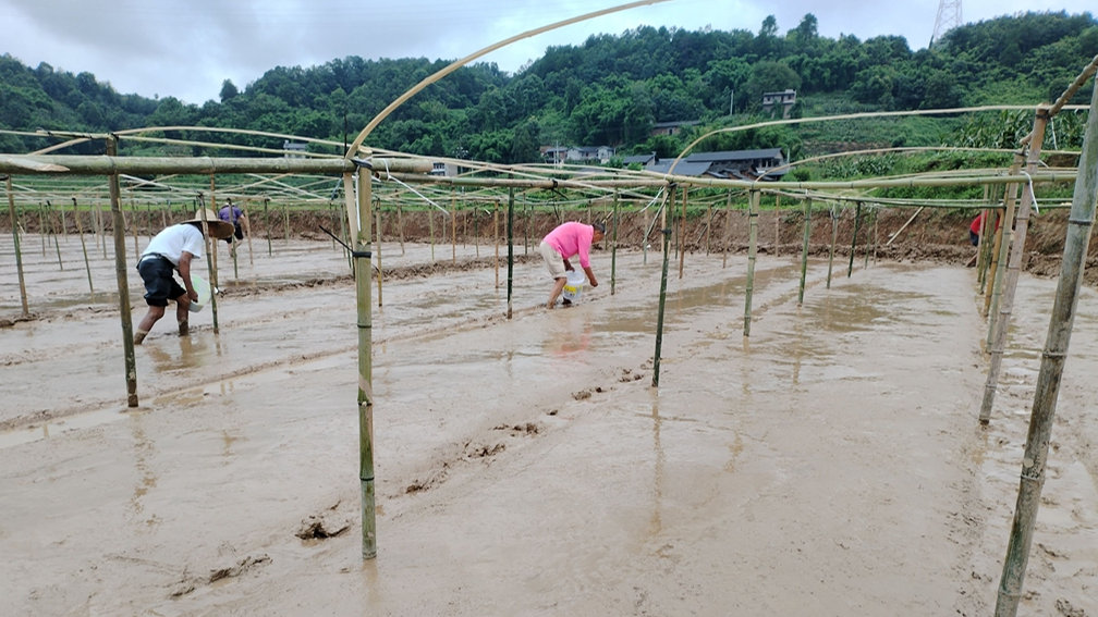 7月18日,重庆江津先锋镇金紫村,刚掰完糯玉米的高标准农田里,村民们又开始忙着播种中药材——泽泻。浸种、整田、搭棚、撒种……一派热火朝天的景象。
