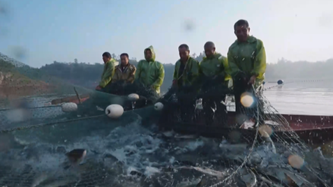 重庆大足:玉滩水库夏捕开网 首网共捕捞大鱼3万斤