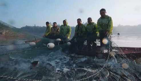 初夏时节,鱼儿丰收,近日,美丽的玉滩水库迎来了夏季的第一捕,大足渝福生态合作社的渔民挽起袖子,戴上手套,一起使劲拉动巨网,首网共捕捞大鱼3万斤。