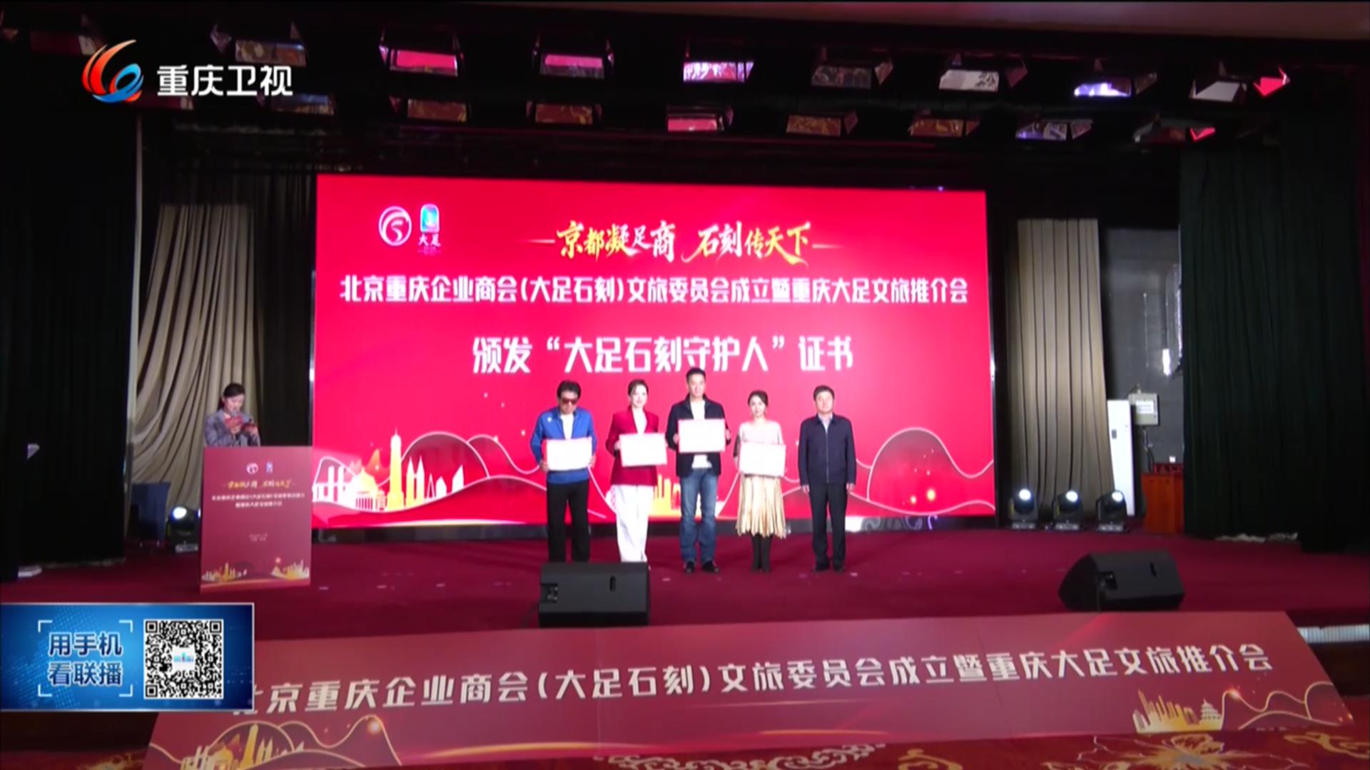 北京重庆企业商会(大足石刻)文旅委员会成立暨重庆大足文旅推介会近日在北京举行,活动授予八位知名艺术家、媒体人“大足石刻守护人”称号并颁发证书。