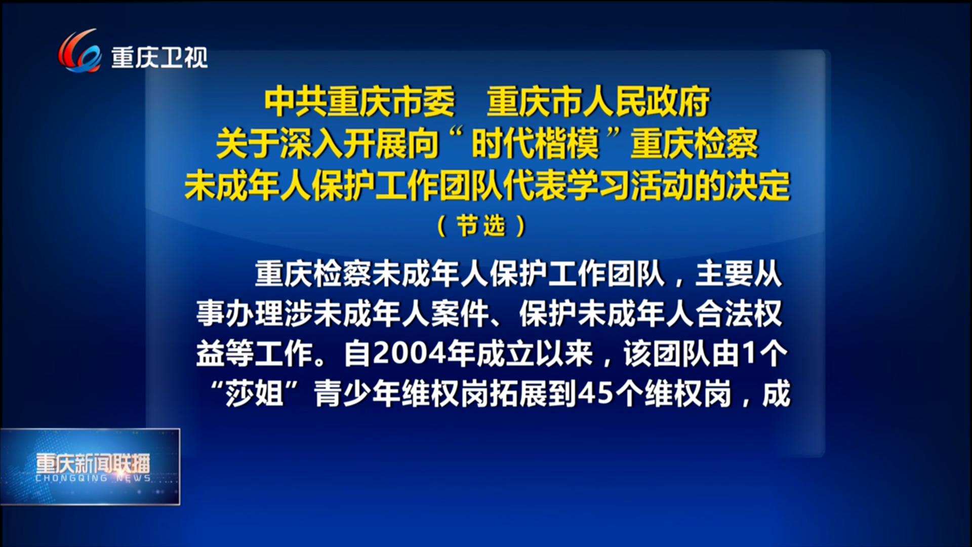 市委市政府决定深入开展向“时代楷模”重庆检察未成年人保护工作团队代表学习活动