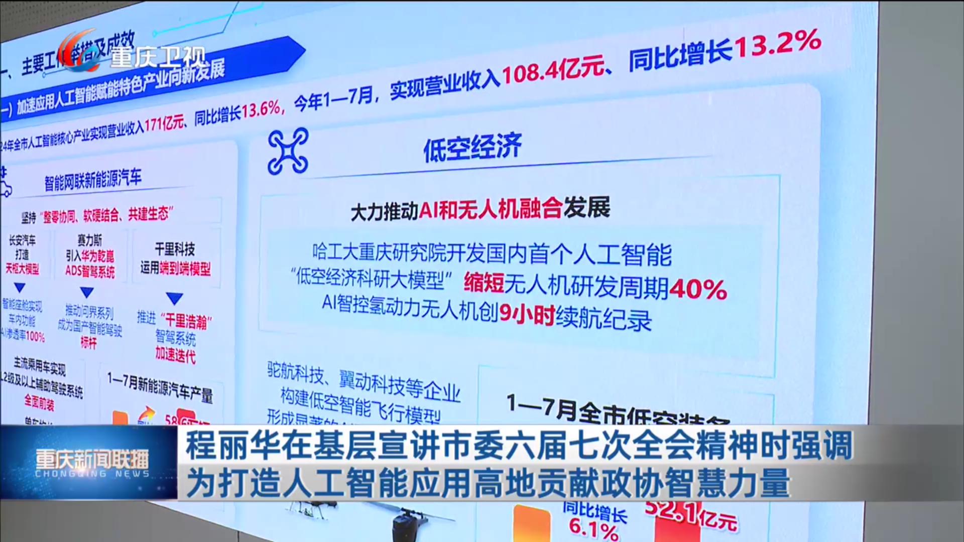 市政协党组书记、主席程丽华9月11日赴基层宣讲市委六届七次全会精神并调研人工智能产业发展情况。她强调,要深入学习贯彻习近平总书记致2025世界智能产业博览会重要贺信精神,全面落实市委六届七次全会部署和重庆市科技创新大会精神,为我市加快打造具有全国影响力的人工智能应用高地贡献政协智慧力量。