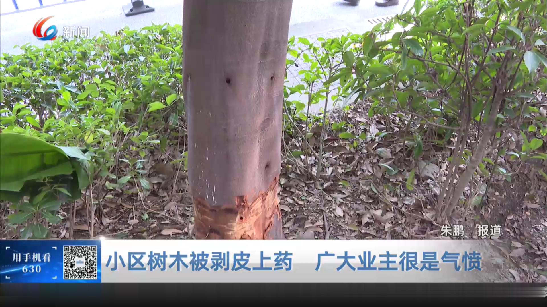 今天早上,两江新区伽蓝艺墅小区的居民们发现,小区里的三根树被人剥了皮,并打孔上药,对于这样的行为,小区居民感到非常的气愤。