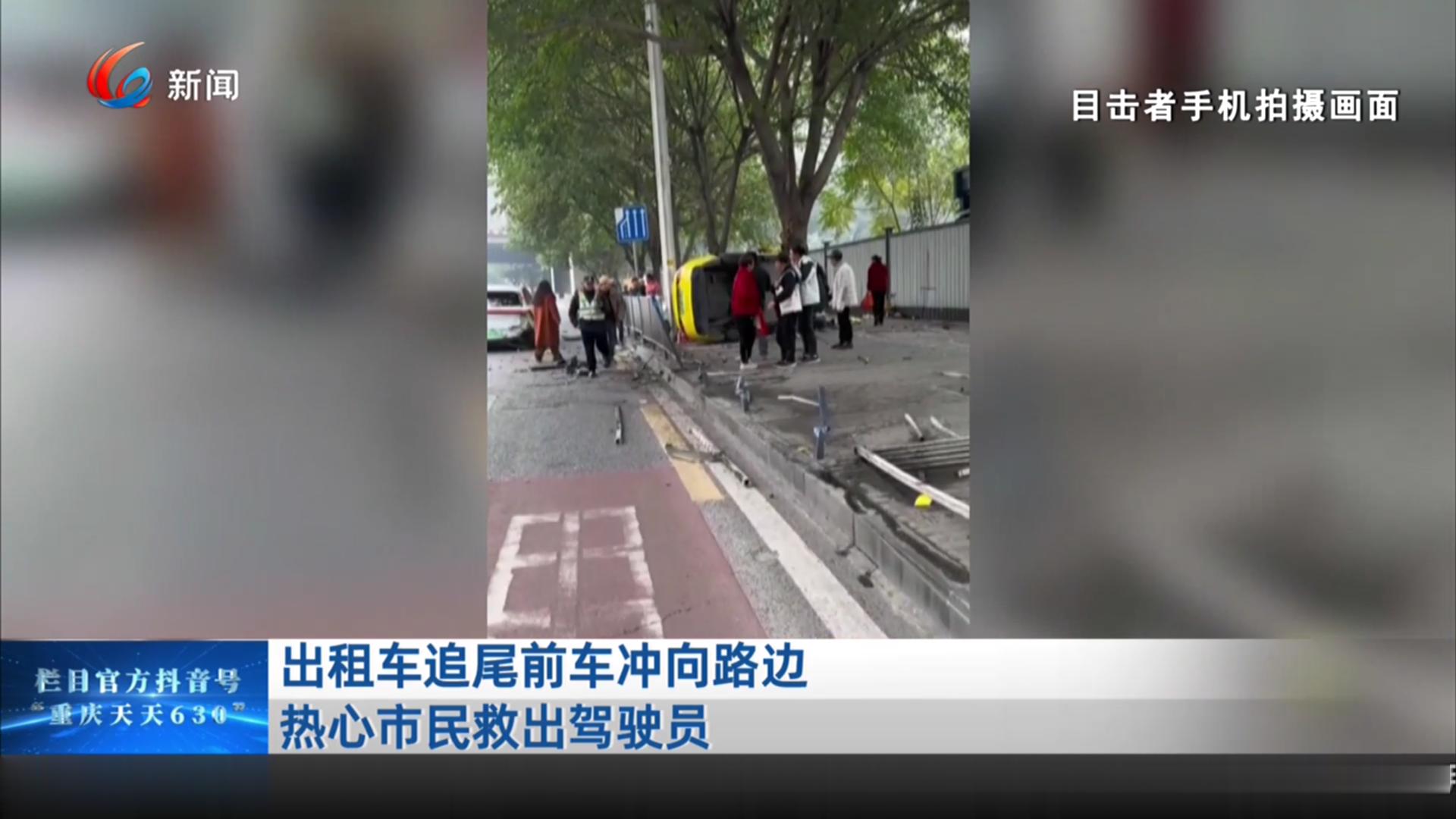 出租车追尾前车冲向路边 热心市民救出驾驶员