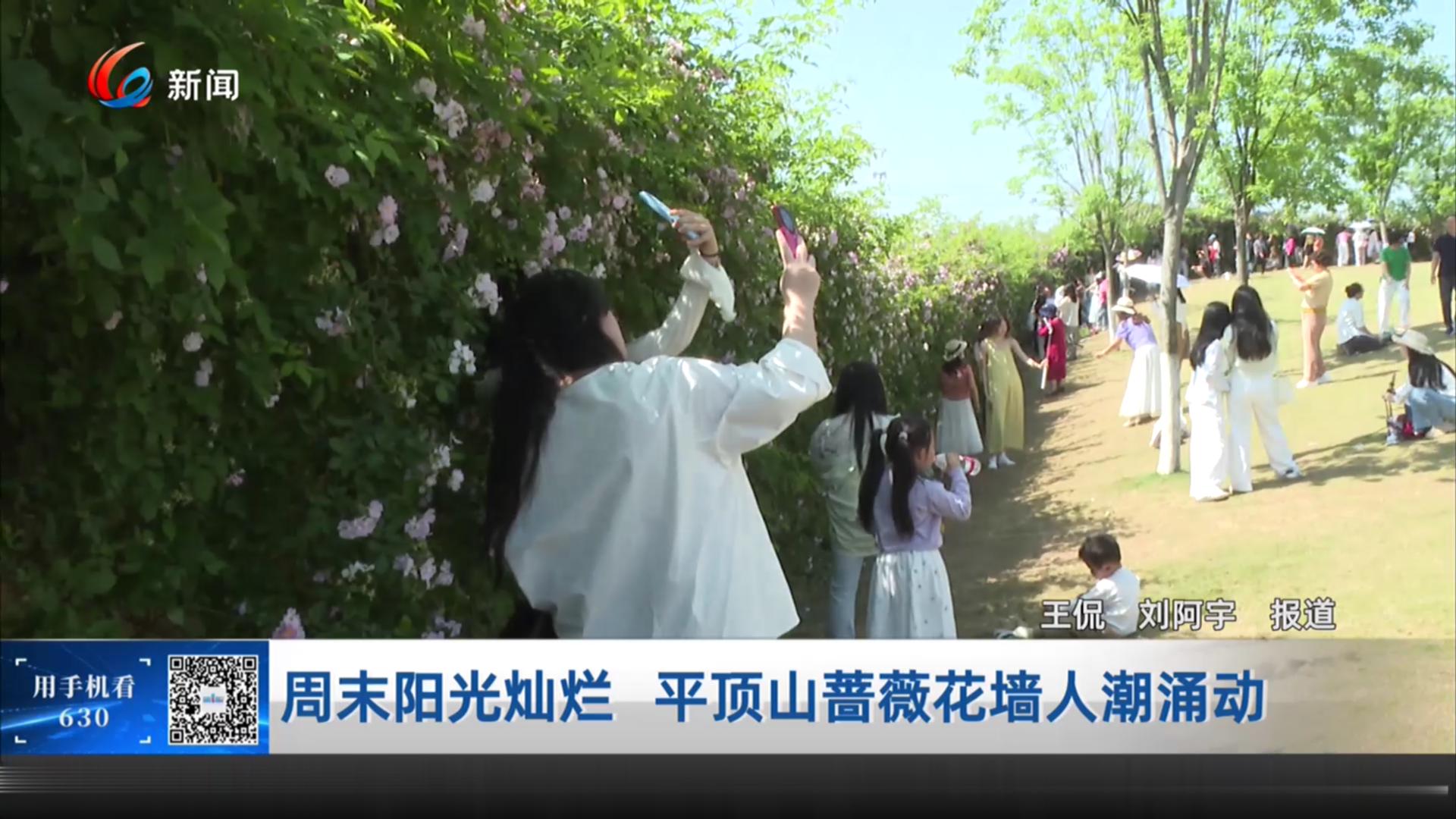 周末阳光灿烂 平顶山蔷薇花墙人潮涌动