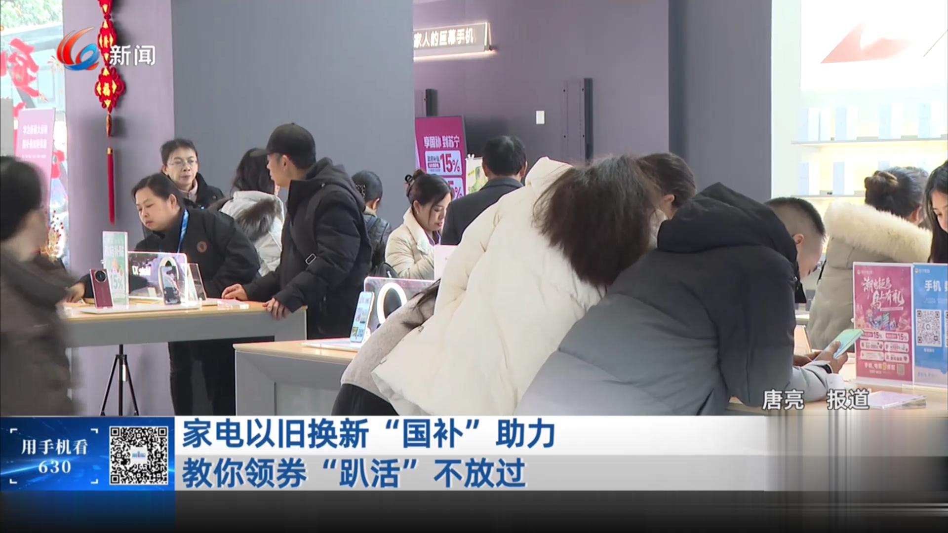 1月9日开始,我市市民在购买手机、平板电脑、洗衣机、冰箱等数码产品和家电时,可以通过领取消费券的形式,直接在购买支付环节,进行抵扣,享受国家政策补贴。如今,这项政策已经落地,记者走访了家电卖场,发现有了补贴政策助力,市民以旧换新的热情不减。