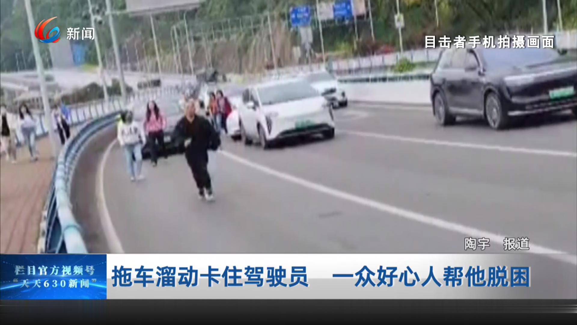 拖车溜动卡住驾驶员 一众好心人帮他脱困