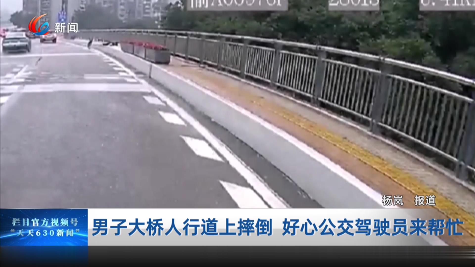 男子大桥人行道上摔倒 好心公交驾驶员来帮忙