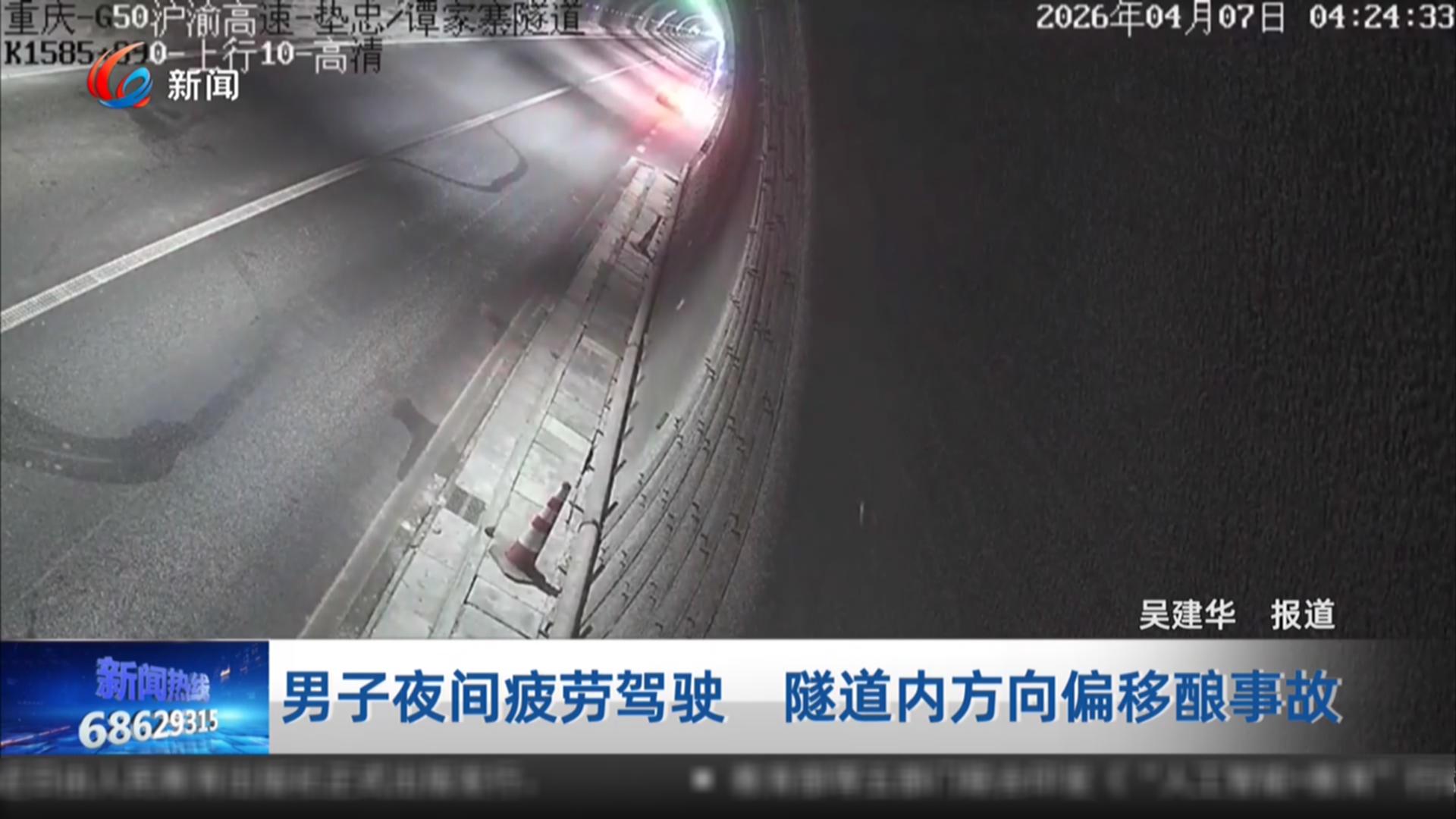 男子夜间疲劳驾驶 隧道内方向偏移酿事故