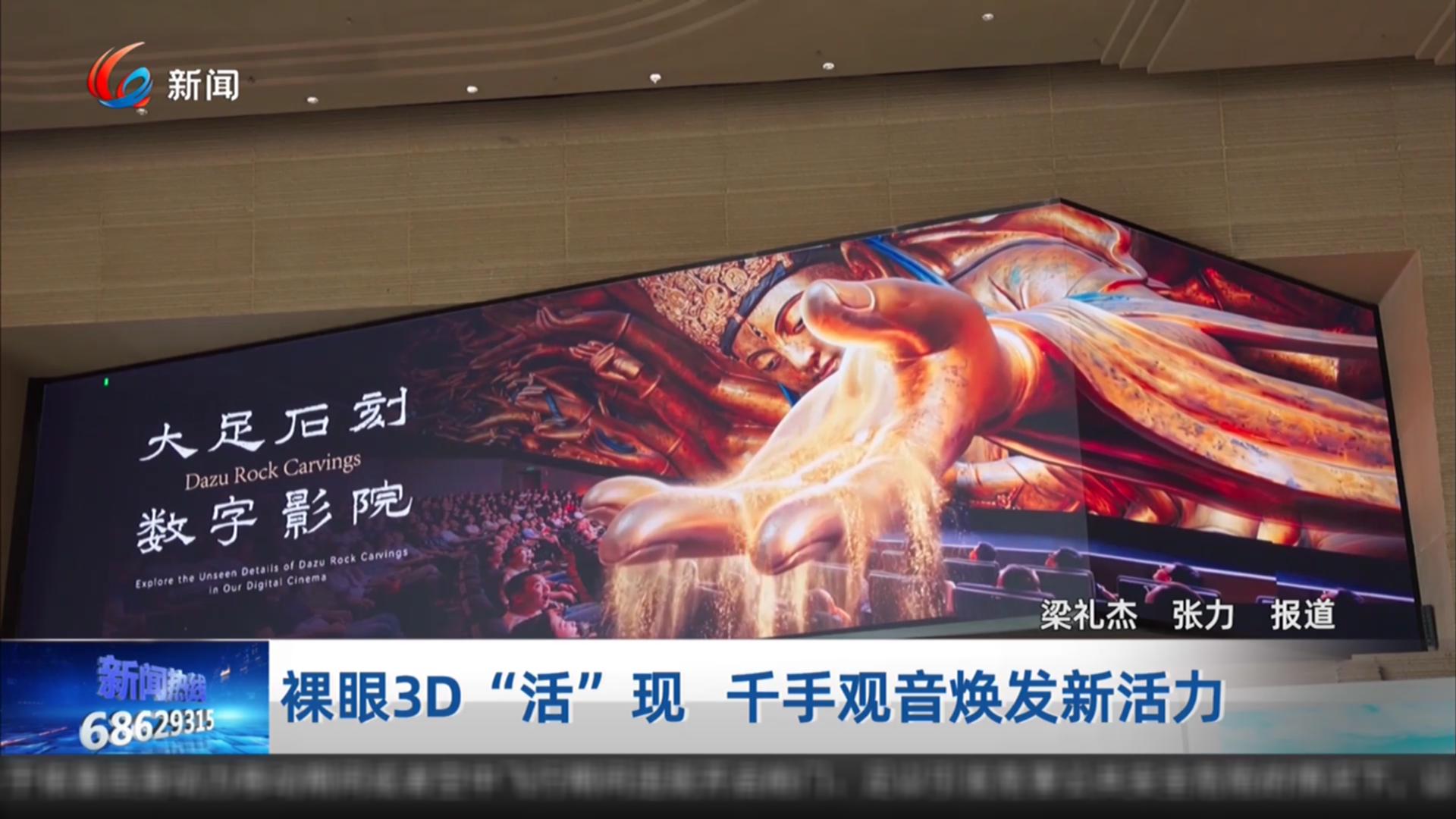 大足石刻宝顶山千手观音造像,算是南宋石刻艺术的巅峰之作。近日,大足石刻宝顶山景区在售票大厅增设专属屏幕,以裸眼3D形式呈现千手观音形象,让这尊千年造像焕发时代新活力,为游客带来沉浸式文化体验。