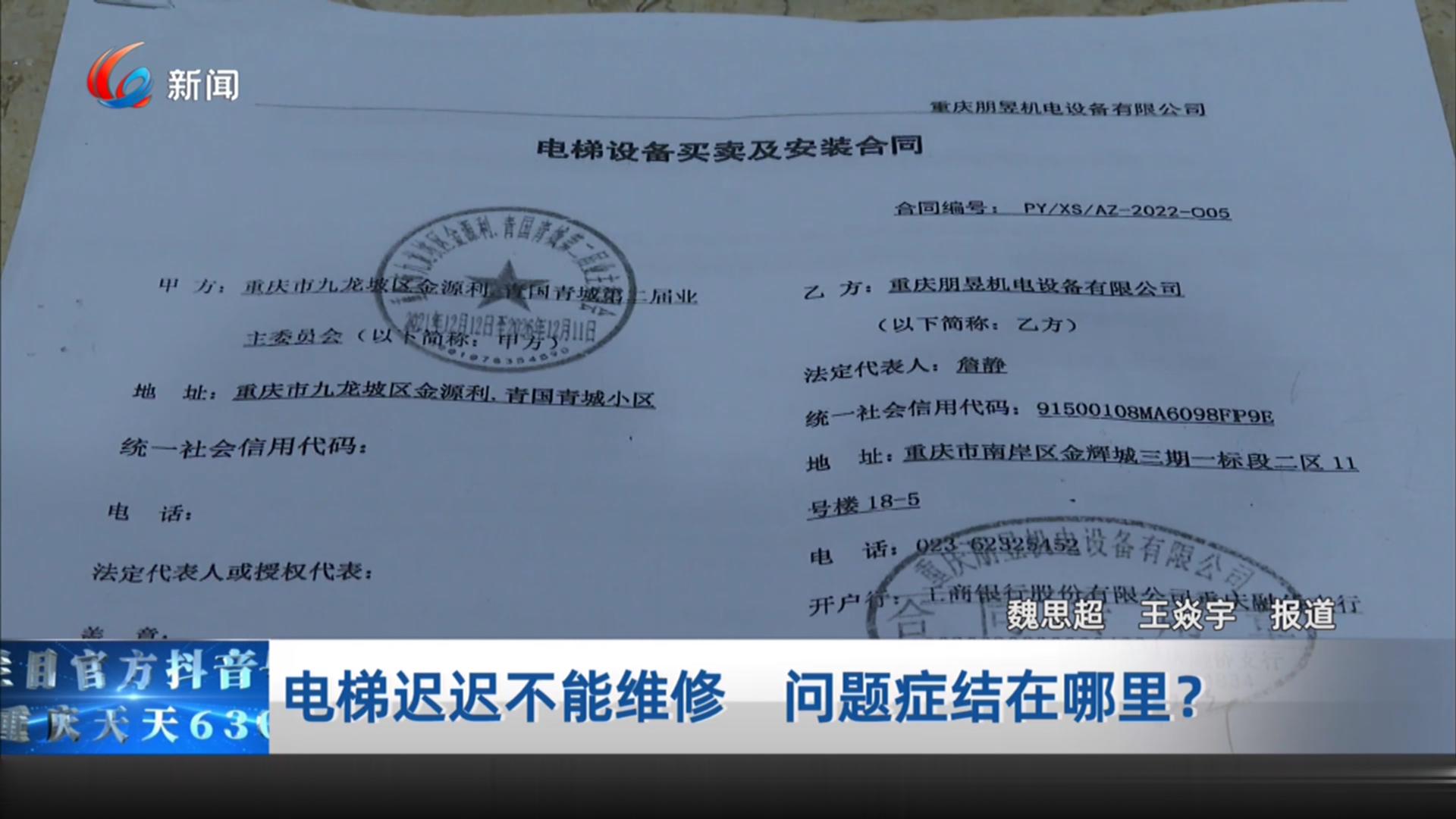 九龙坡黄桷坪街道青国青城小区4栋的业主们反映,单元楼的电梯坏了一部,迟迟得不到维修。问题的症结究竟出在哪里?
