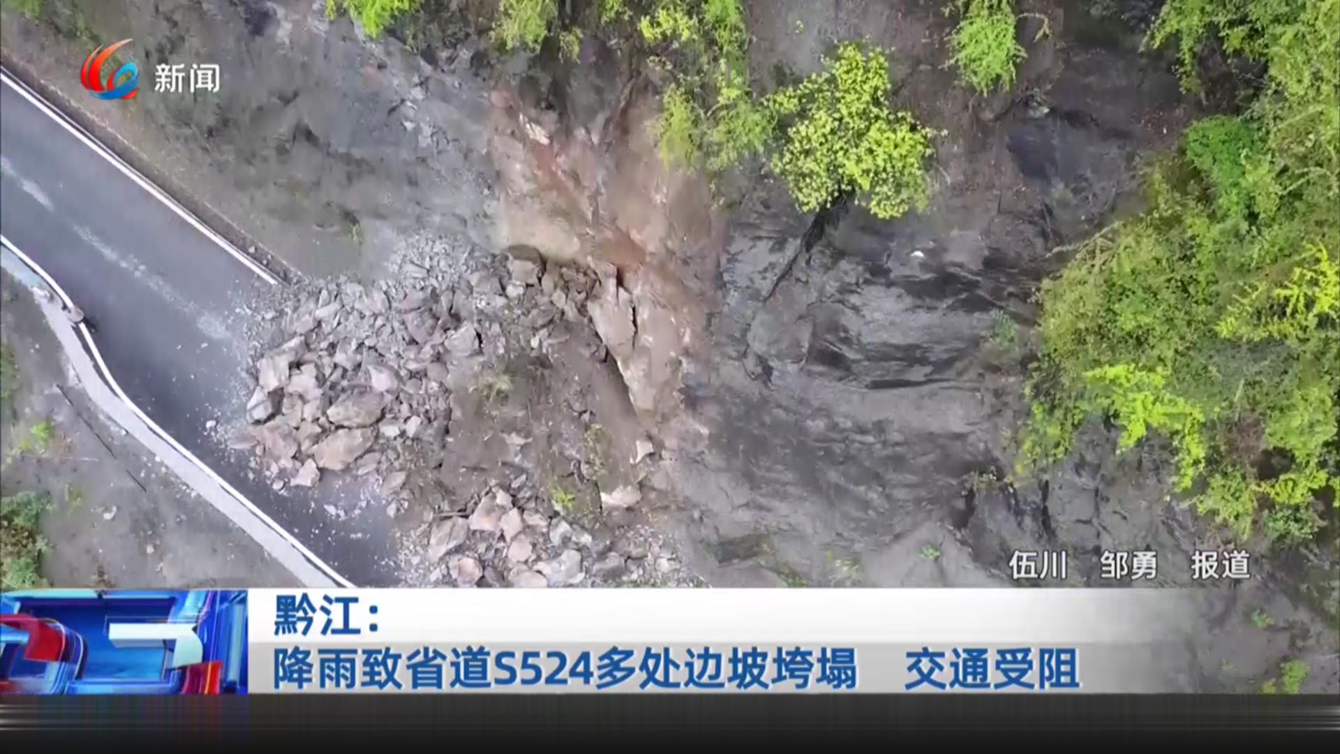 黔江:降雨致省道S524多处边坡垮塌 交通受阻