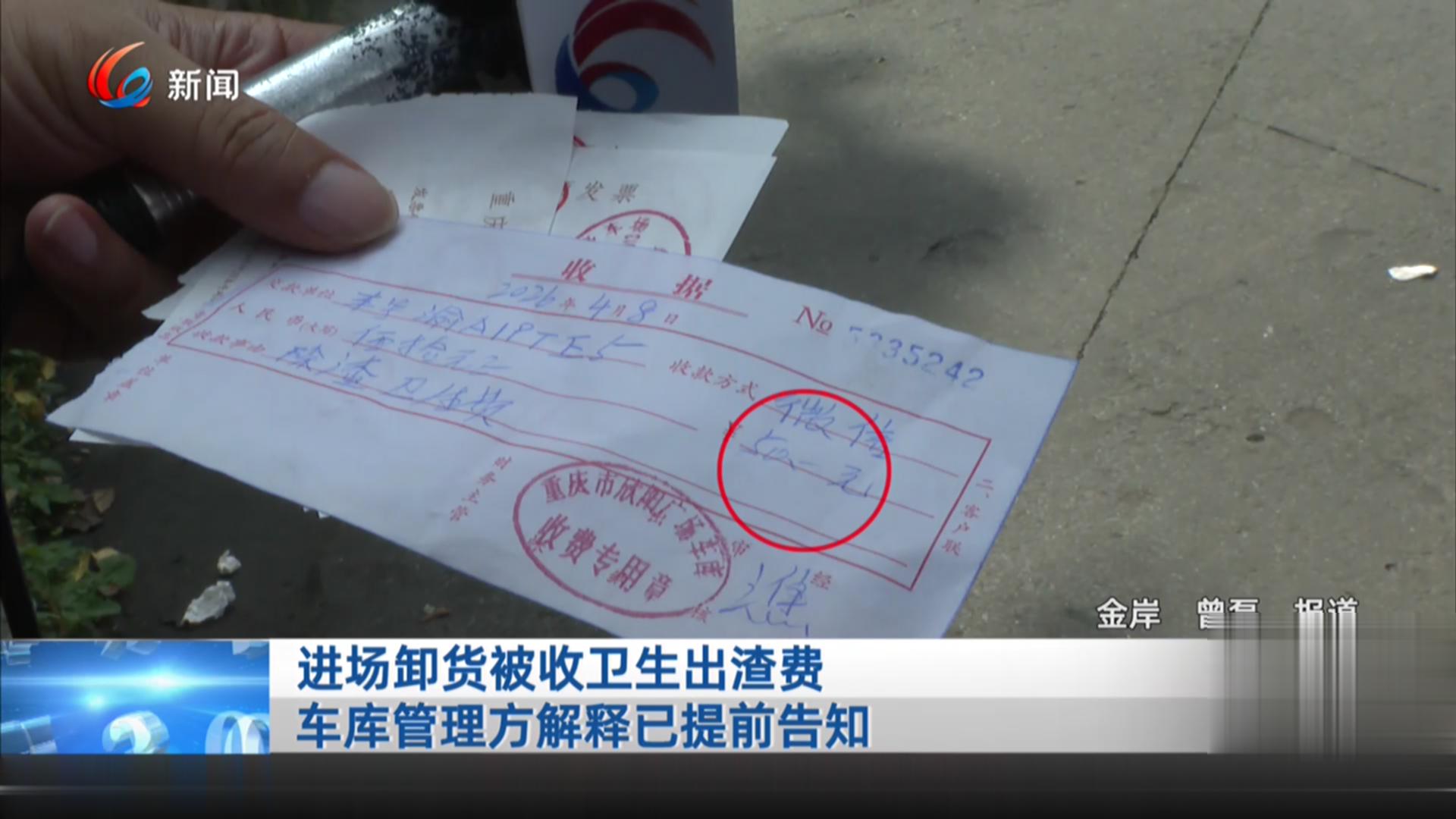 进场卸货被收卫生出渣费 车库管理方解释已提前告知