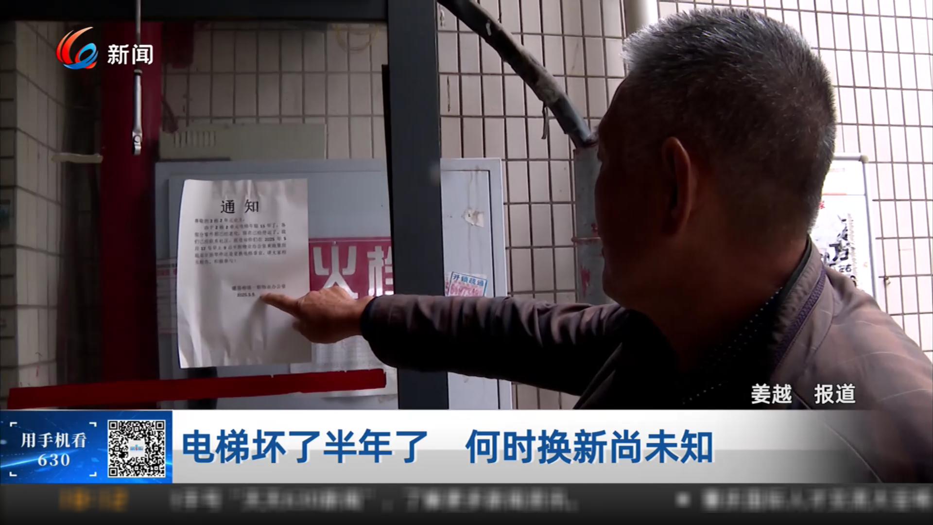 小区电梯坏了半年,时至今日,电梯依然停运,巴南区曦圆柳镇一期有两栋单元楼的居民每天只有爬楼梯进出。