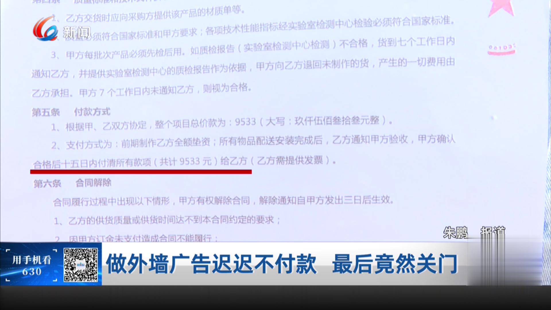 刘女士帮一家公司做了外墙广告字,合同约定验收合格后15日内支付费用,但验收完成已经半年了,这家公司还是没有支付费用,最糟糕的是,现在这家公司现在大门紧闭,对方的电话微信也联系不上了。