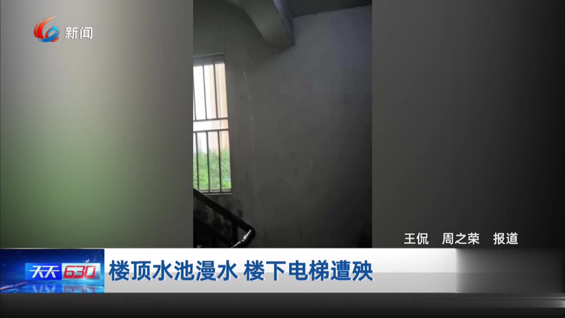 位于楼顶供水池出了问题,大量清水外溢,导致电梯进水,居民出行受到影响。今天凌晨,南岸区石雅云苑小区5号楼就发生了这样的事儿。