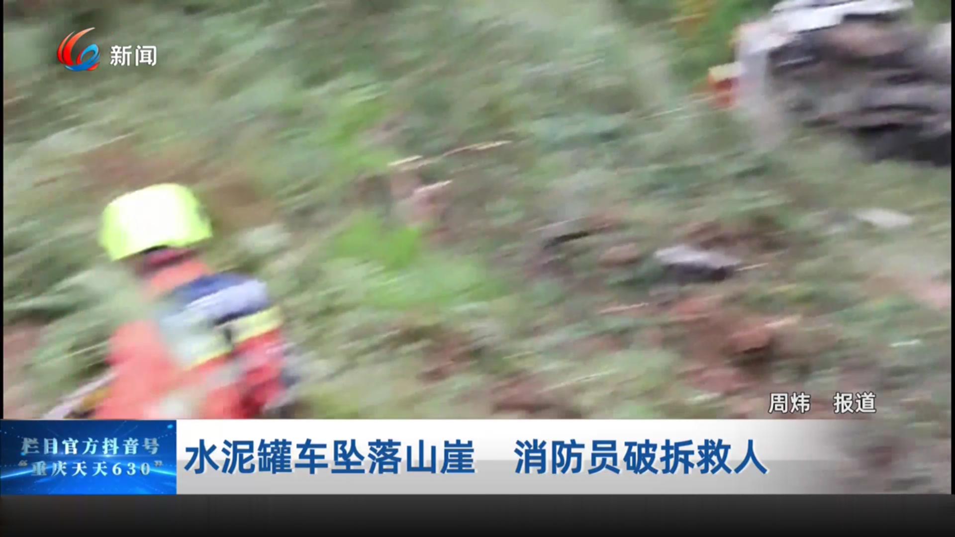 10月29日上午,在南川区福寿镇附近,一辆水泥罐车不慎跃过山坡护栏, 坠落到山崖下。司机侥幸爬出车外,但副驾驶位的一名乘员被变形车体牢牢卡住,无法脱身,急需救援。