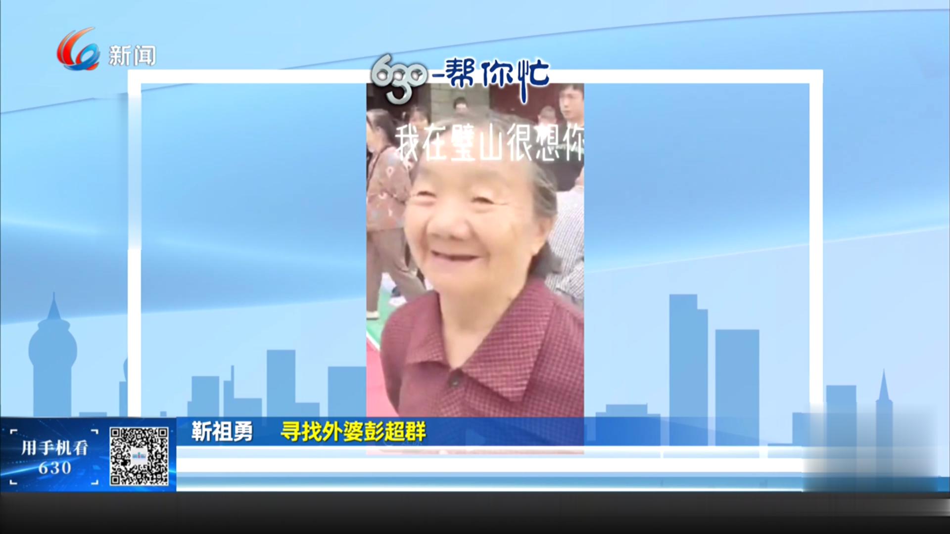 630帮你忙 期待大家来帮忙 今天我们要帮助一位 潼南的市民 寻找走失的外婆,一起来关注下。