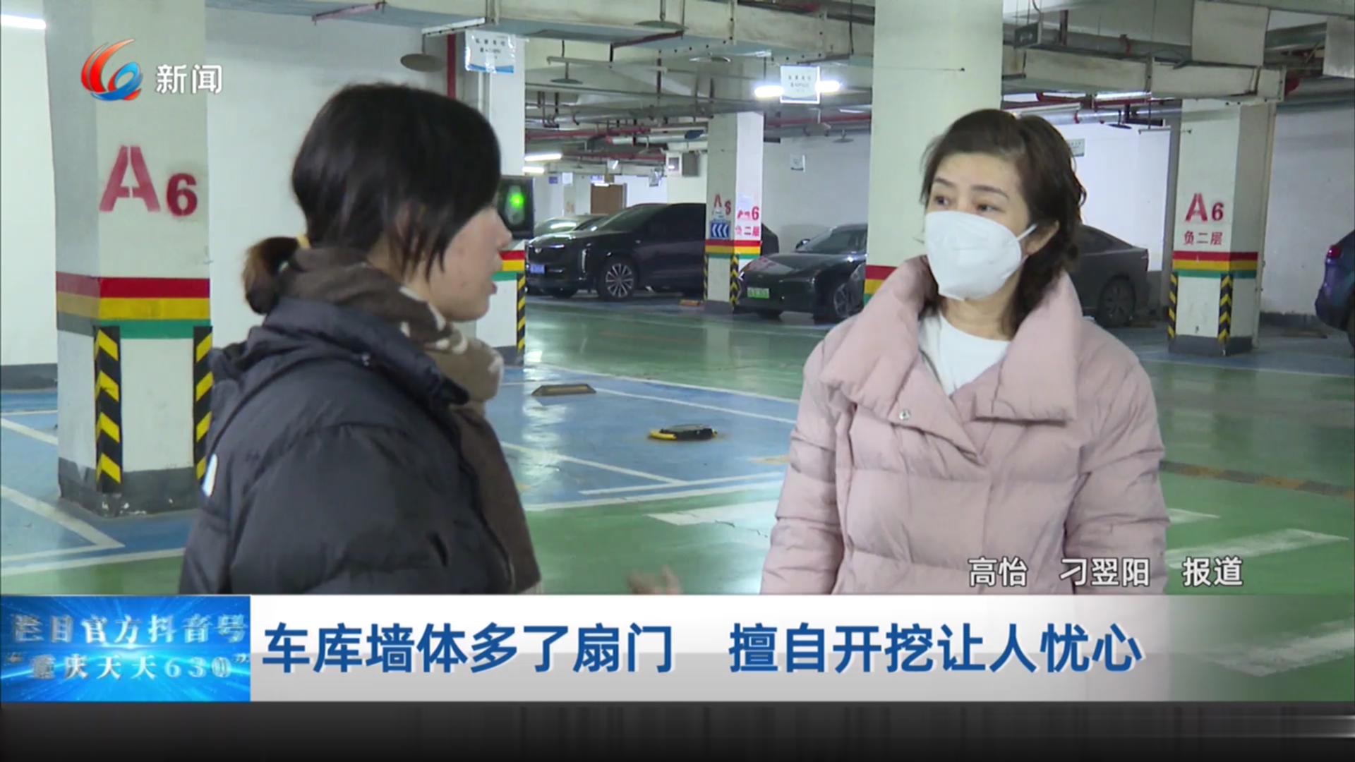 在车库旁边开挖地下室,还擅自在车库墙面上开门。南岸区奥园城市天地的业主乔女士担心,这样违规的开挖,会给自己带来影响。