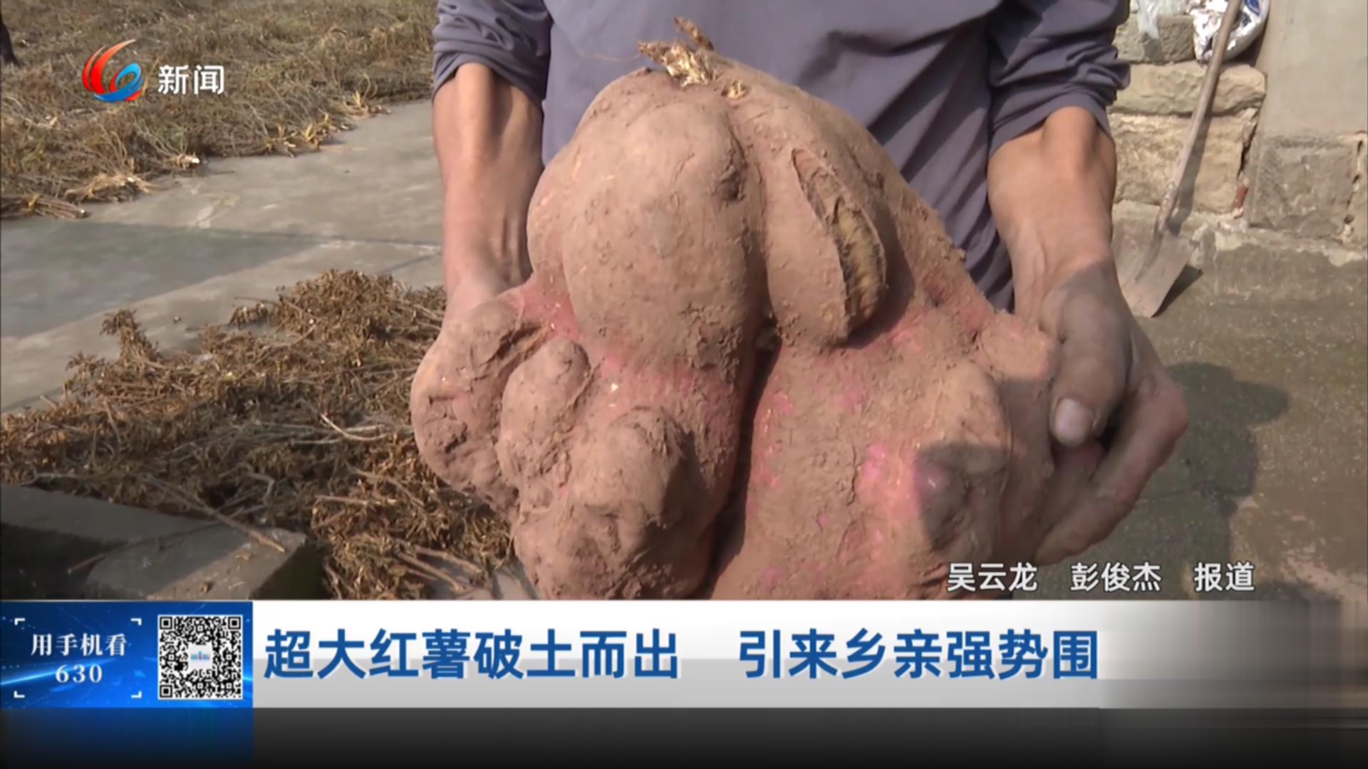 超大红薯破土而出 引来乡亲强势围观