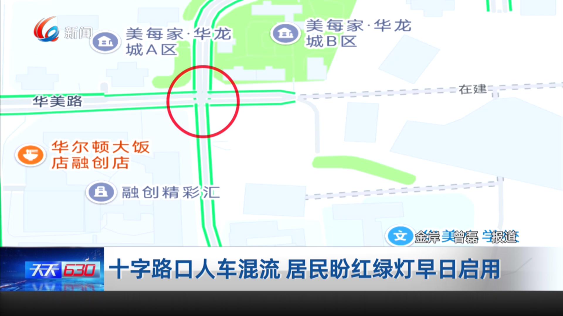 九龙坡区华岩新城华美路和华美一路交叉地带有一个十字路口,当地居民说,十字路口的红绿灯已经安装好了,但不知道什么原因,一直没有启用。