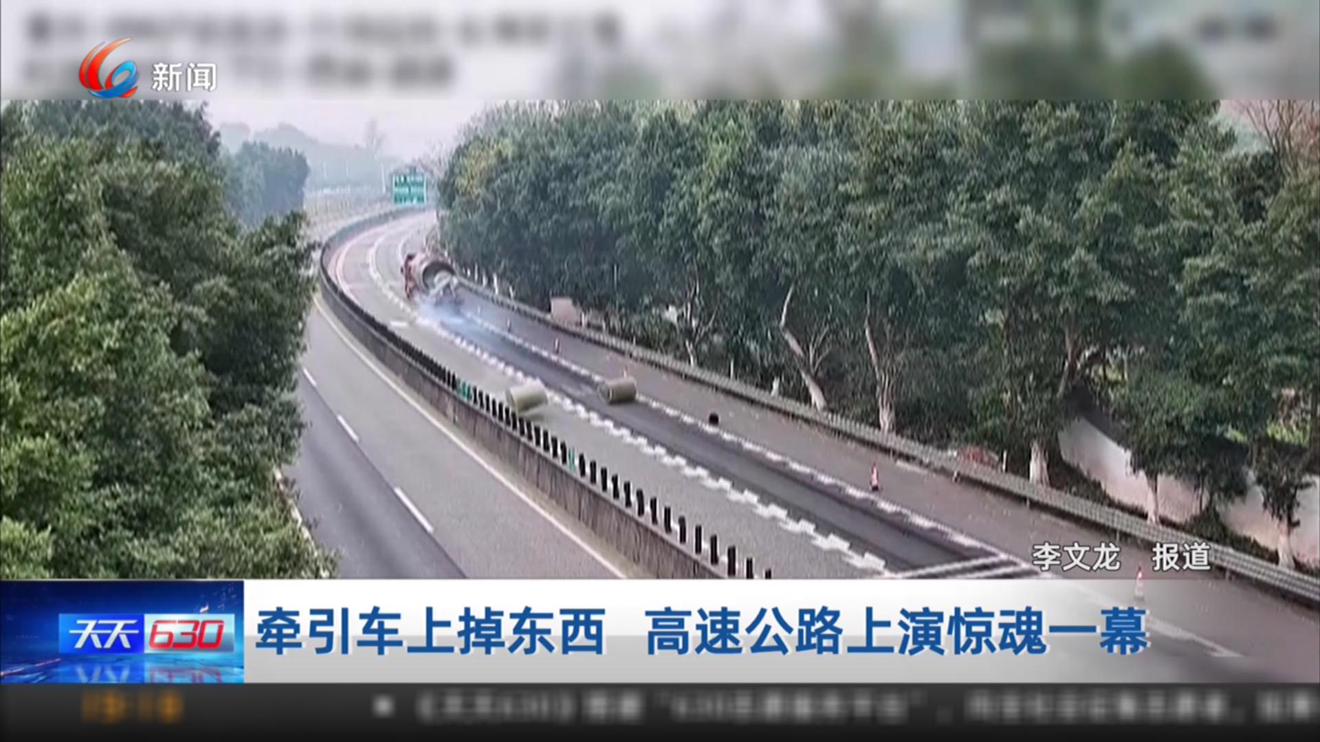 牵引车上落掉东西 高速公路上演惊魂一幕