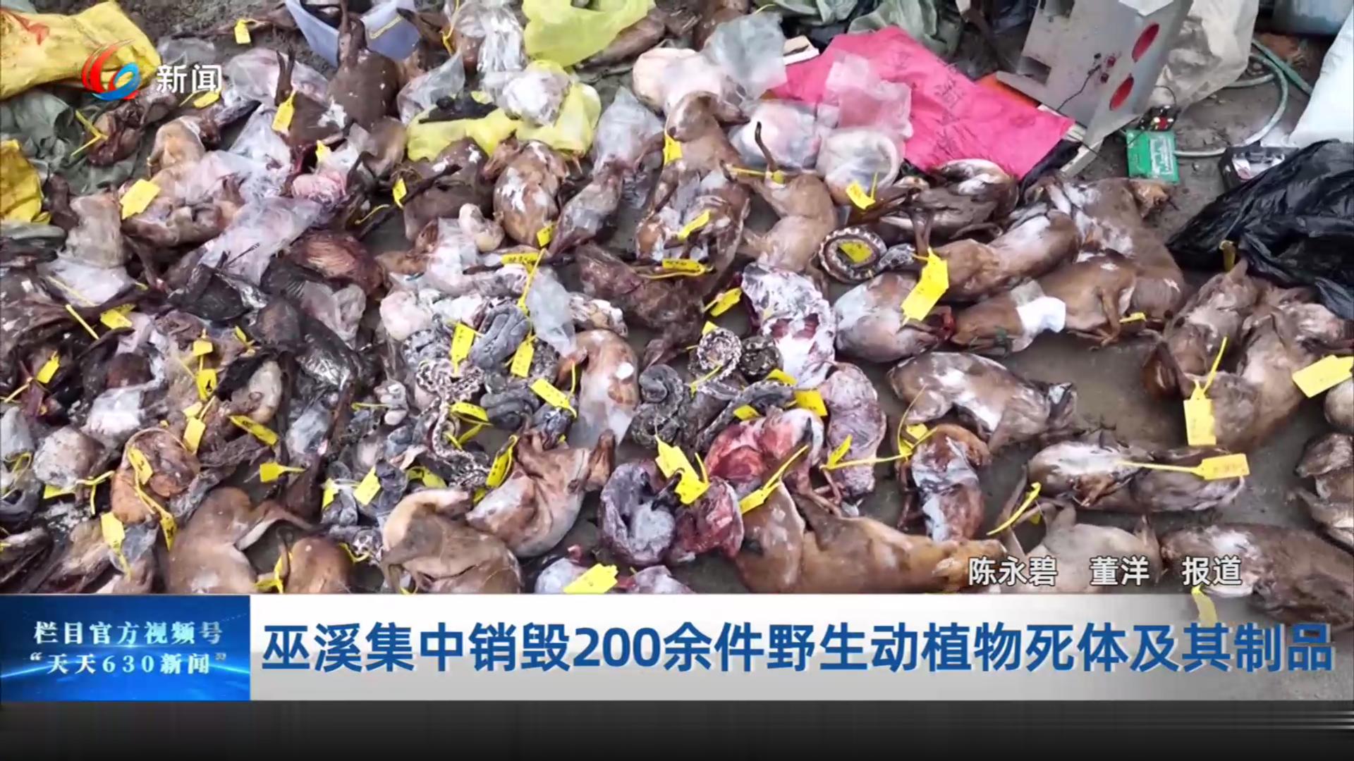 23日,巫溪县林业局联合县公安局对近期依法收缴的200余件野生动植物死体及其制品,进行了集中销毁。