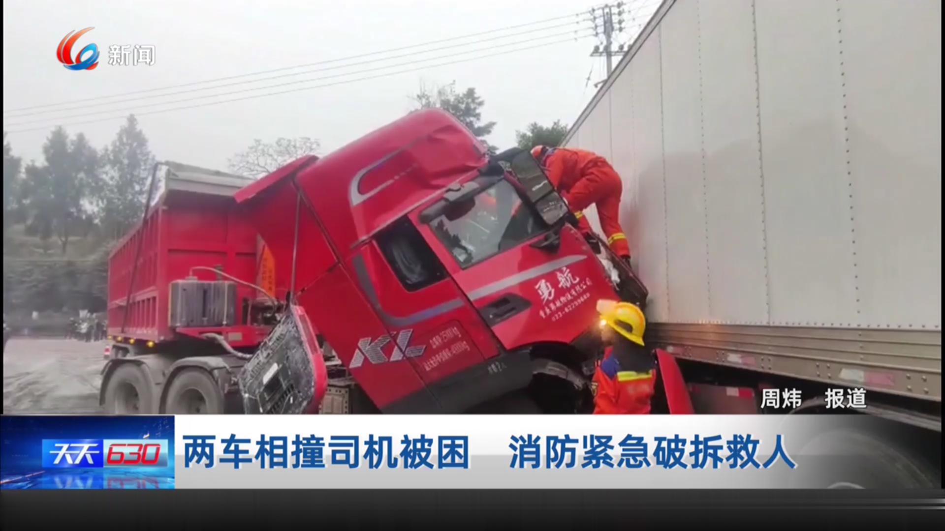两车相撞司机被困 消防紧急破拆救人