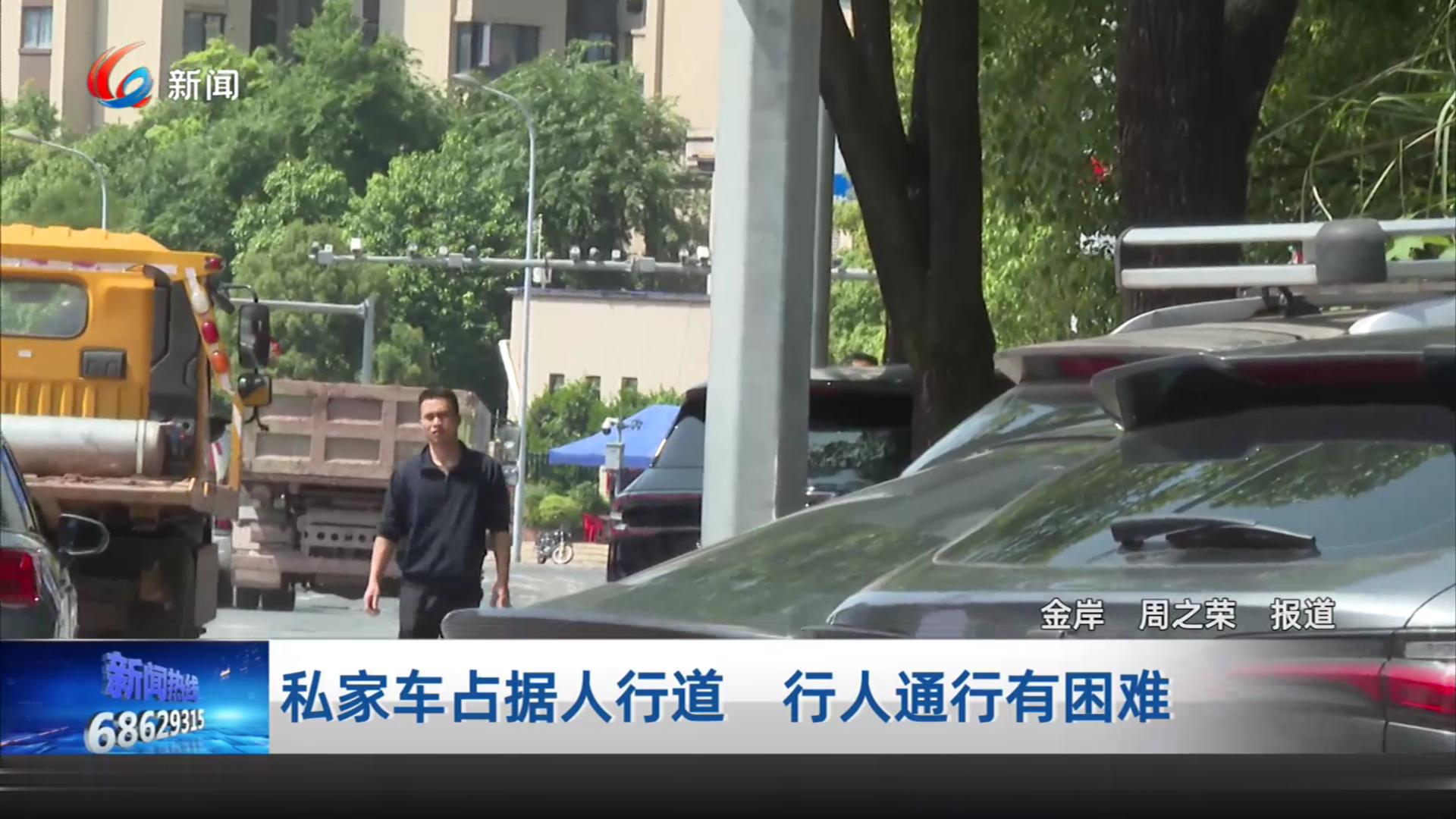 私家车占据人行道 行人通行有困难