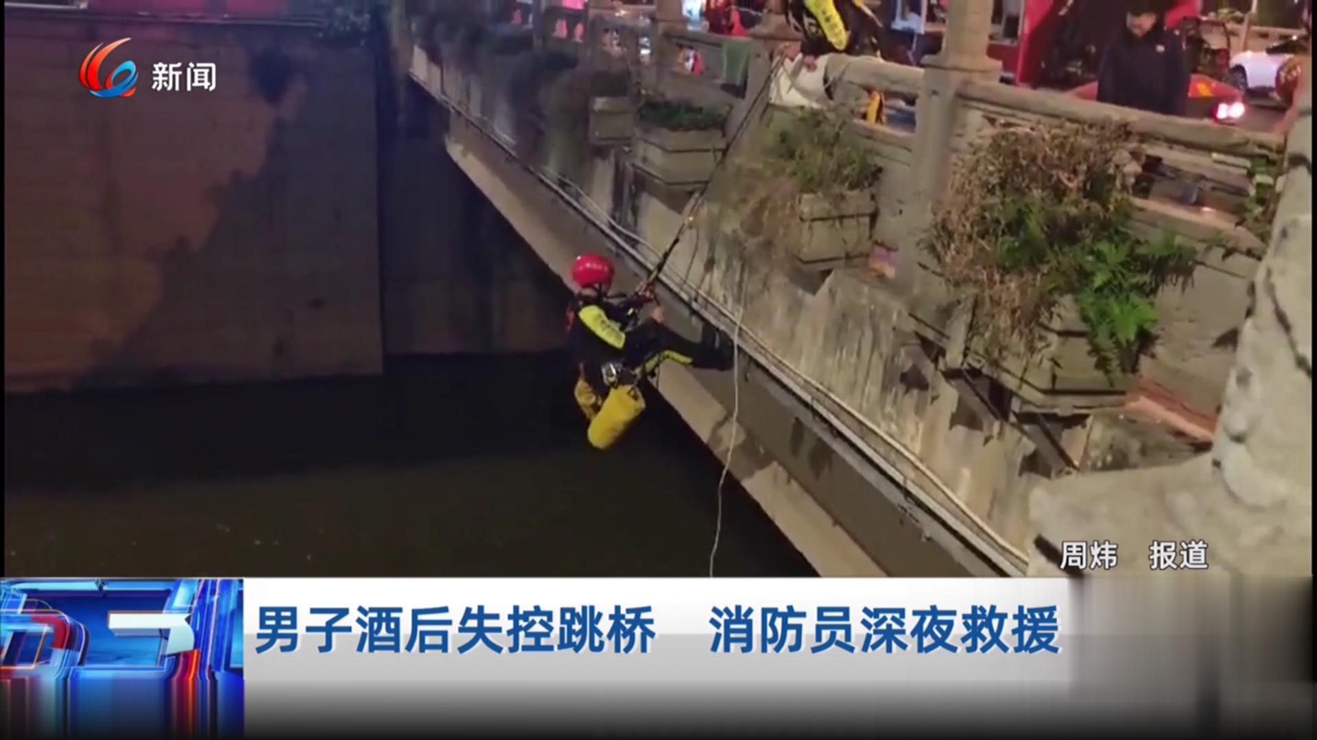 男子酒后失控跳桥 消防员深夜救援
