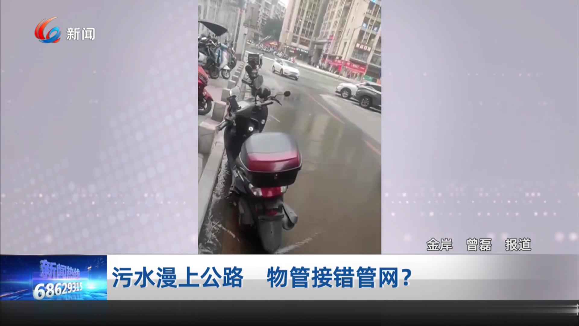污水漫上公路 物管接错管网?