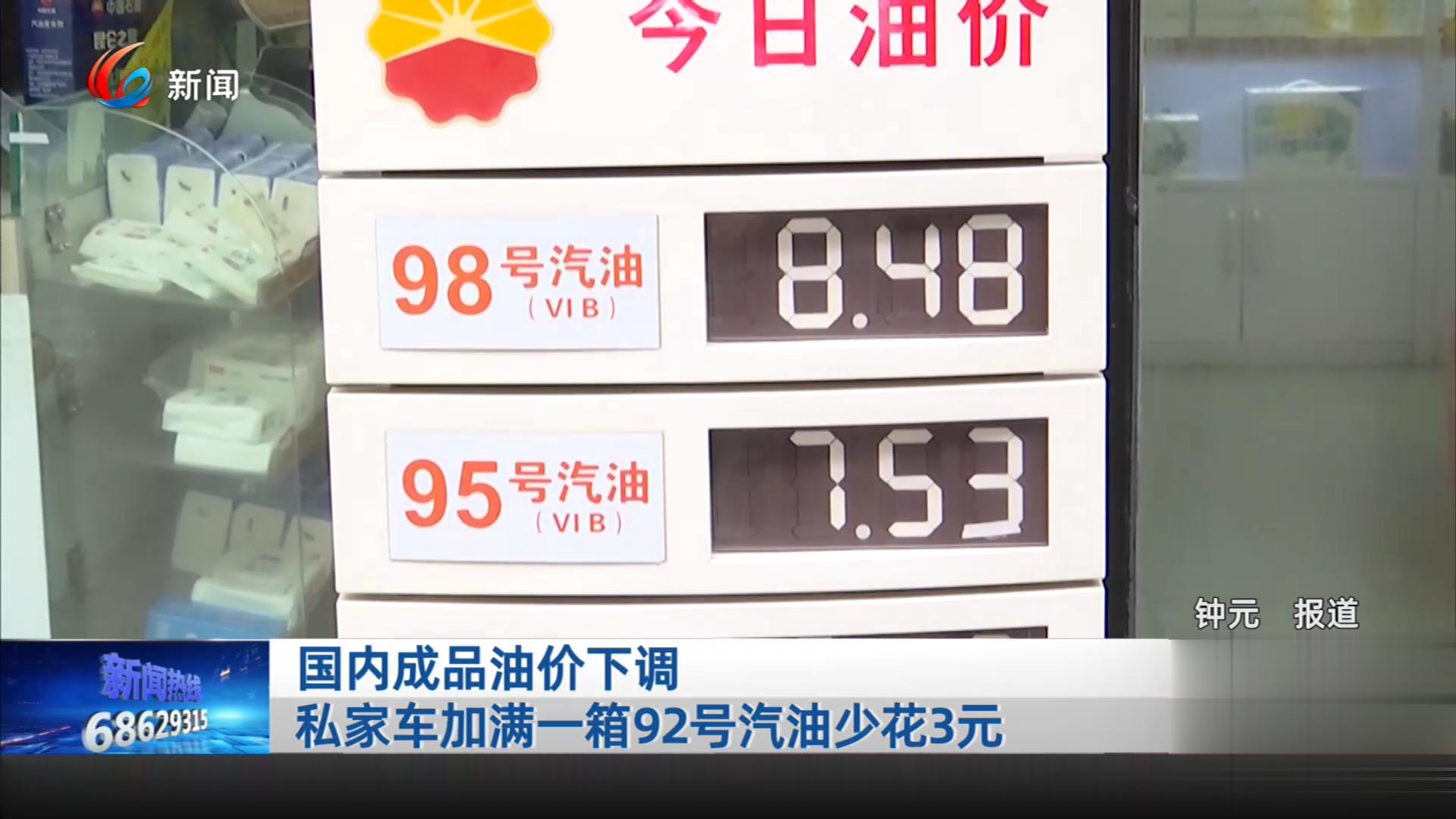 国内成品油价下调 私家车加满一箱92号汽油少花3元