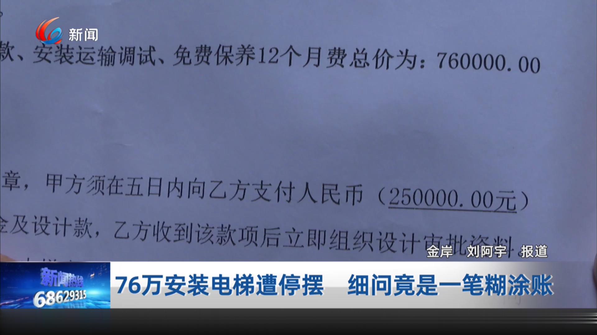 76万安装电梯遭停摆 细问竟是一笔糊涂账