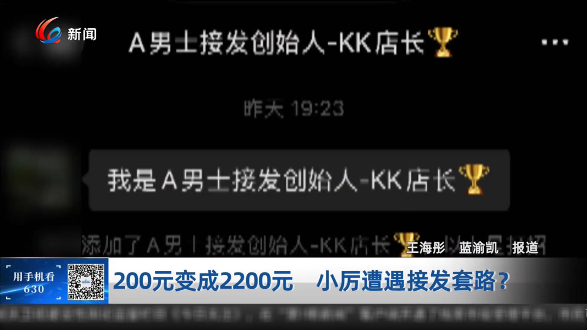 大学生小厉非常注重个人形象,为了有一头酷酷的“美式前刺”发型,他特意到一家美发店去接发。然而让他没想到的是,原本聊天中说好的200元价格,最后居然变成了2200元,暴涨了10倍。拿到结算单,小厉整个人都懵了。