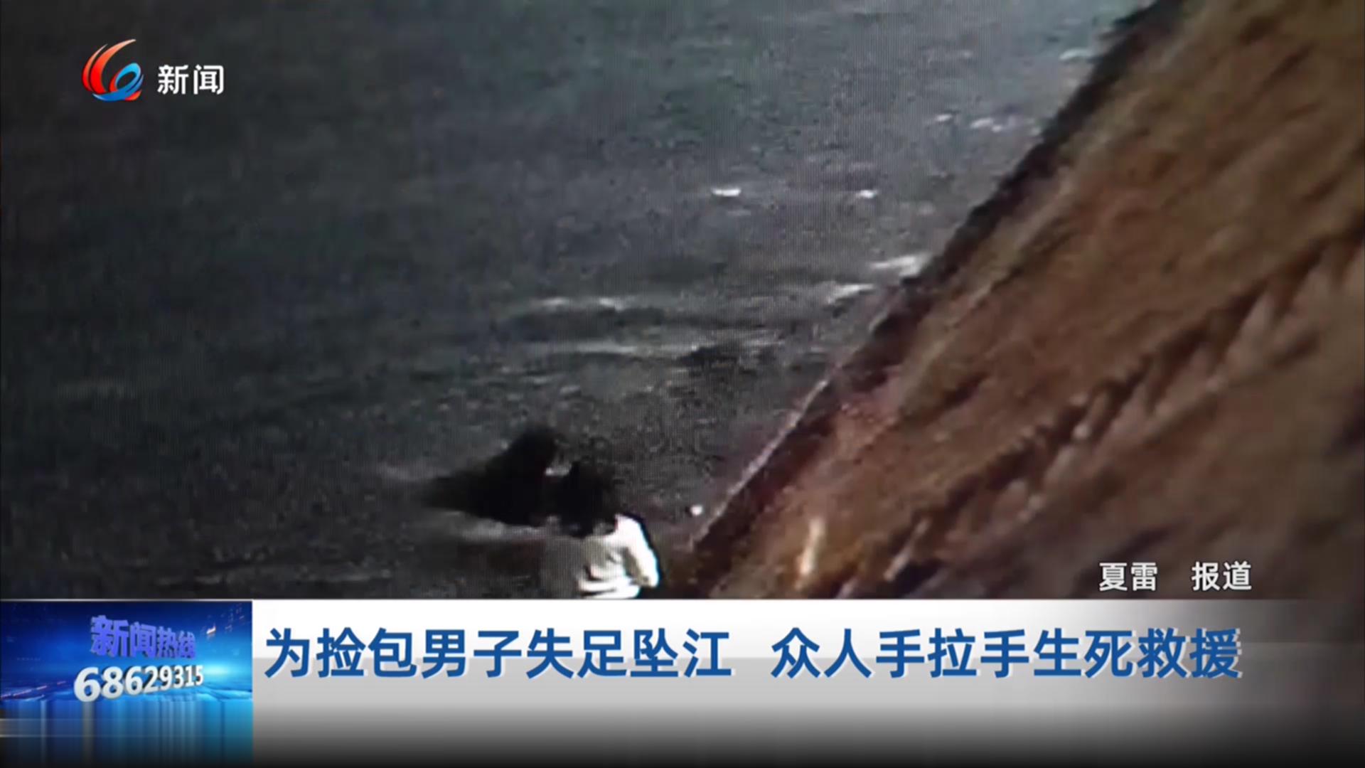 为捡包男子失足坠江 众人手拉手生死救援