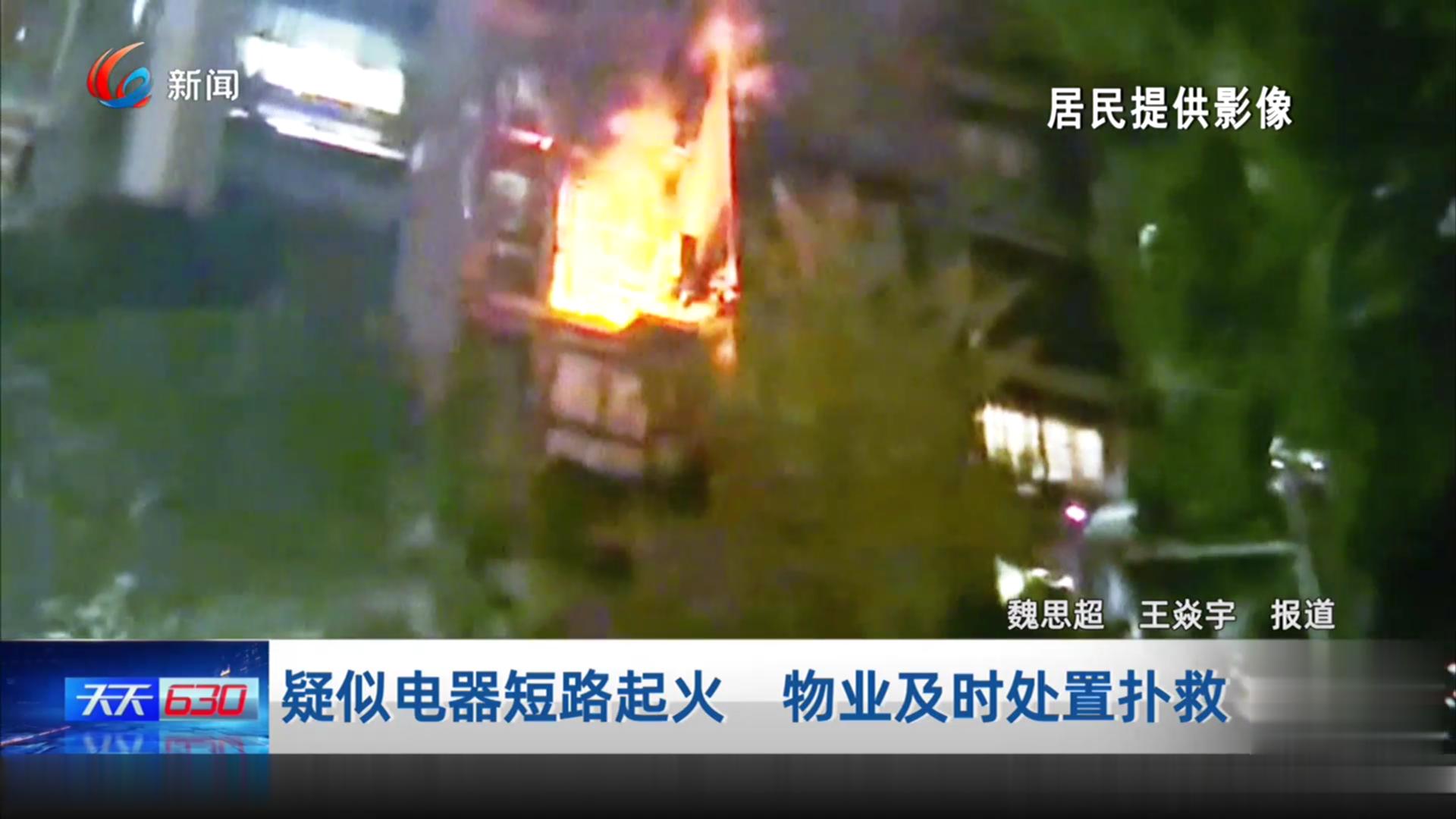 疑似电器短路起火 物业及时处置扑救