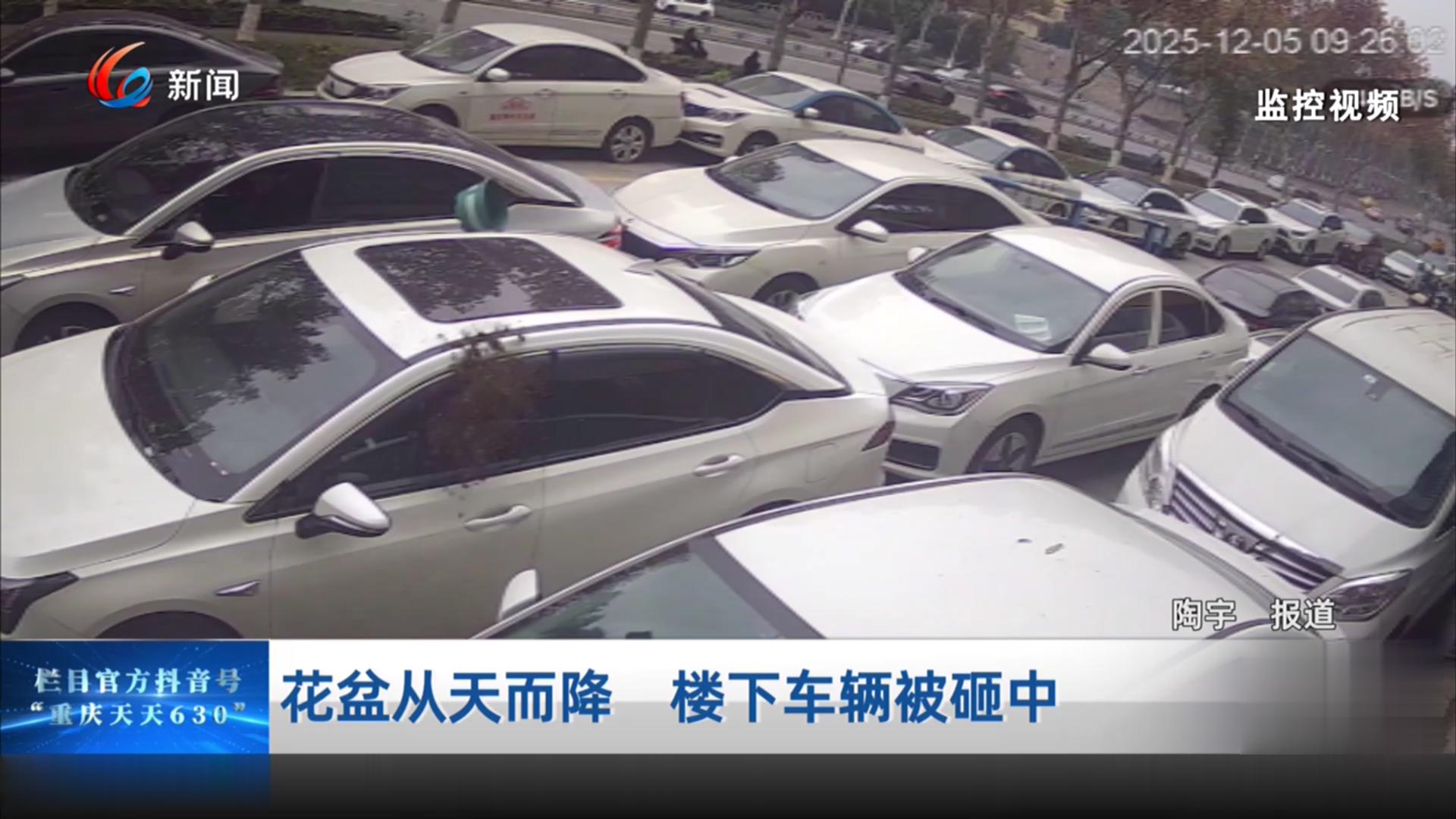花盆从天而降 楼下车辆被砸中