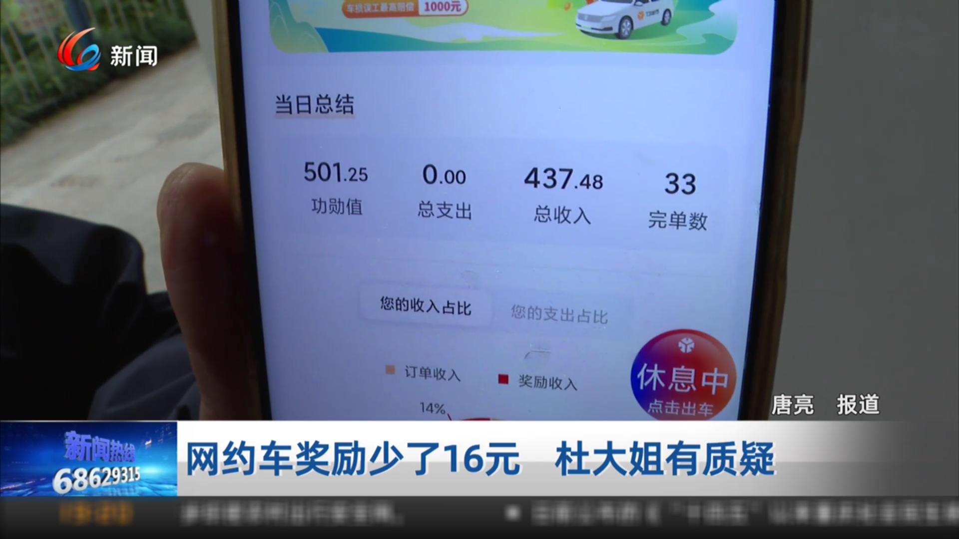 杜大姐是一名全职网约车司机,跑网约车已经有十多年了。最近,杜大姐所签约的T3平台推出了多项鼓励接单跑车的奖励任务,其中就有,每天在主城区跑满33单,司机可获得76元的平台奖励。11月27号,杜大姐刚好跑满33单,然而,让她没想到的是,平台承诺的奖金却少了16元。