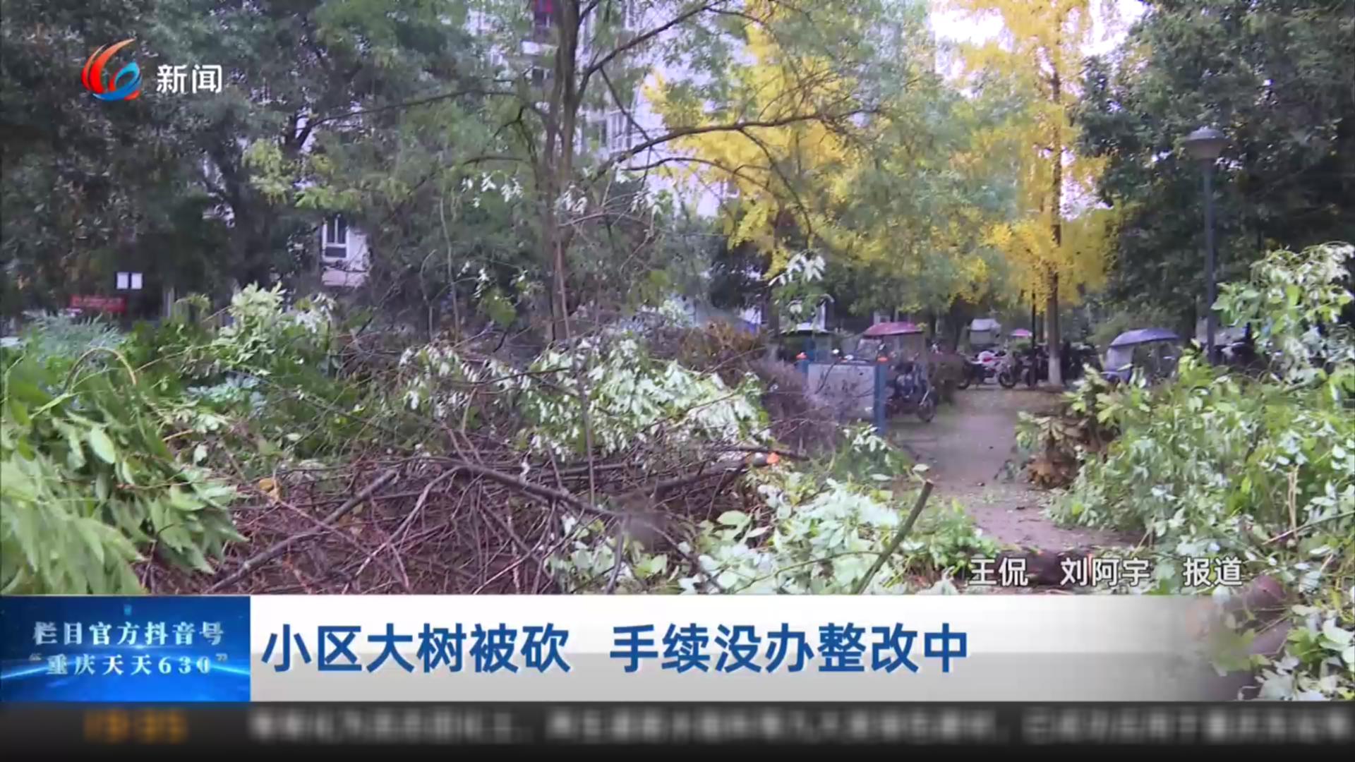 从昨天开始,高新区麒雅中央花园D区的多颗大树被人砍掉。有居民表示,砍伐树木前物业人员拿不出相关手续。