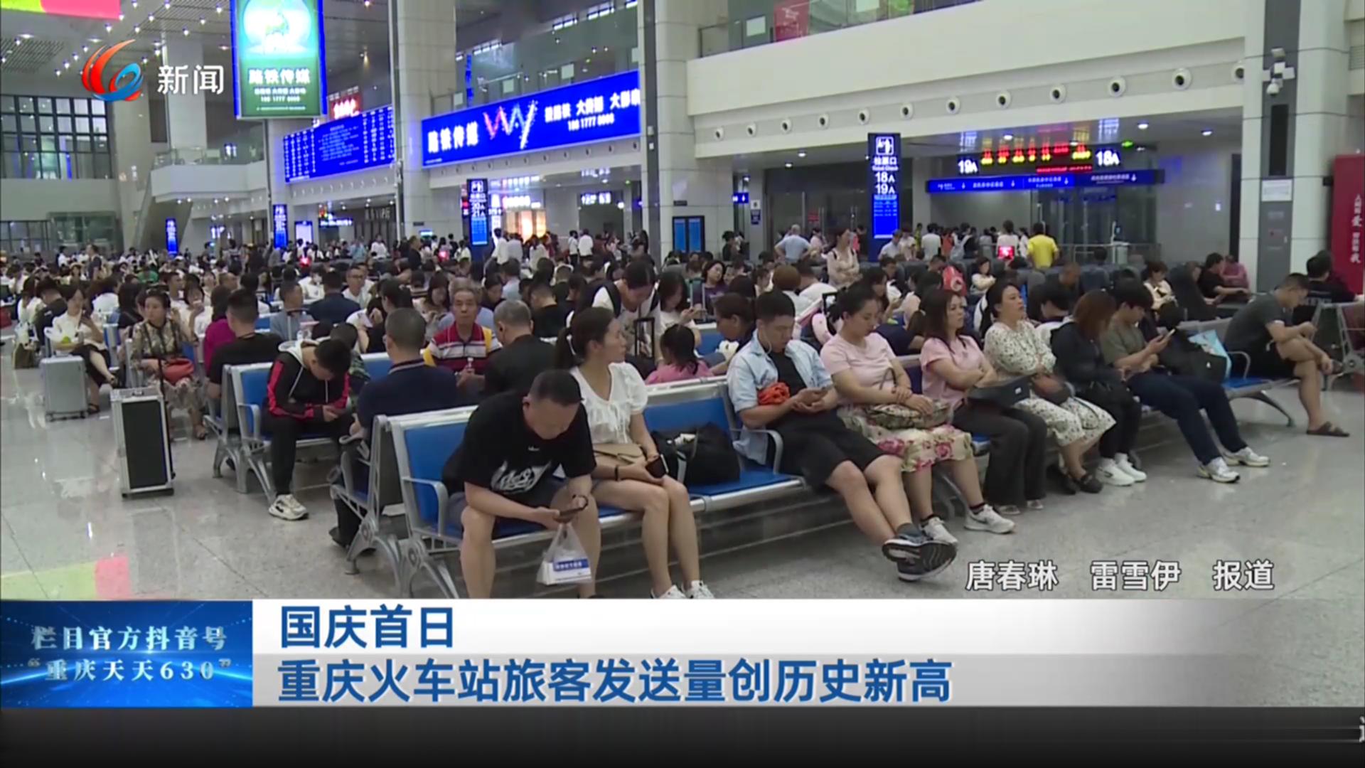 10月1日国庆假期首日,重庆火车站迎来客流高峰,全站累计发送旅客36.8万人次,较2025年“五一”假期单日客发量增加3.9万人次,创下单日客发量历史新高。