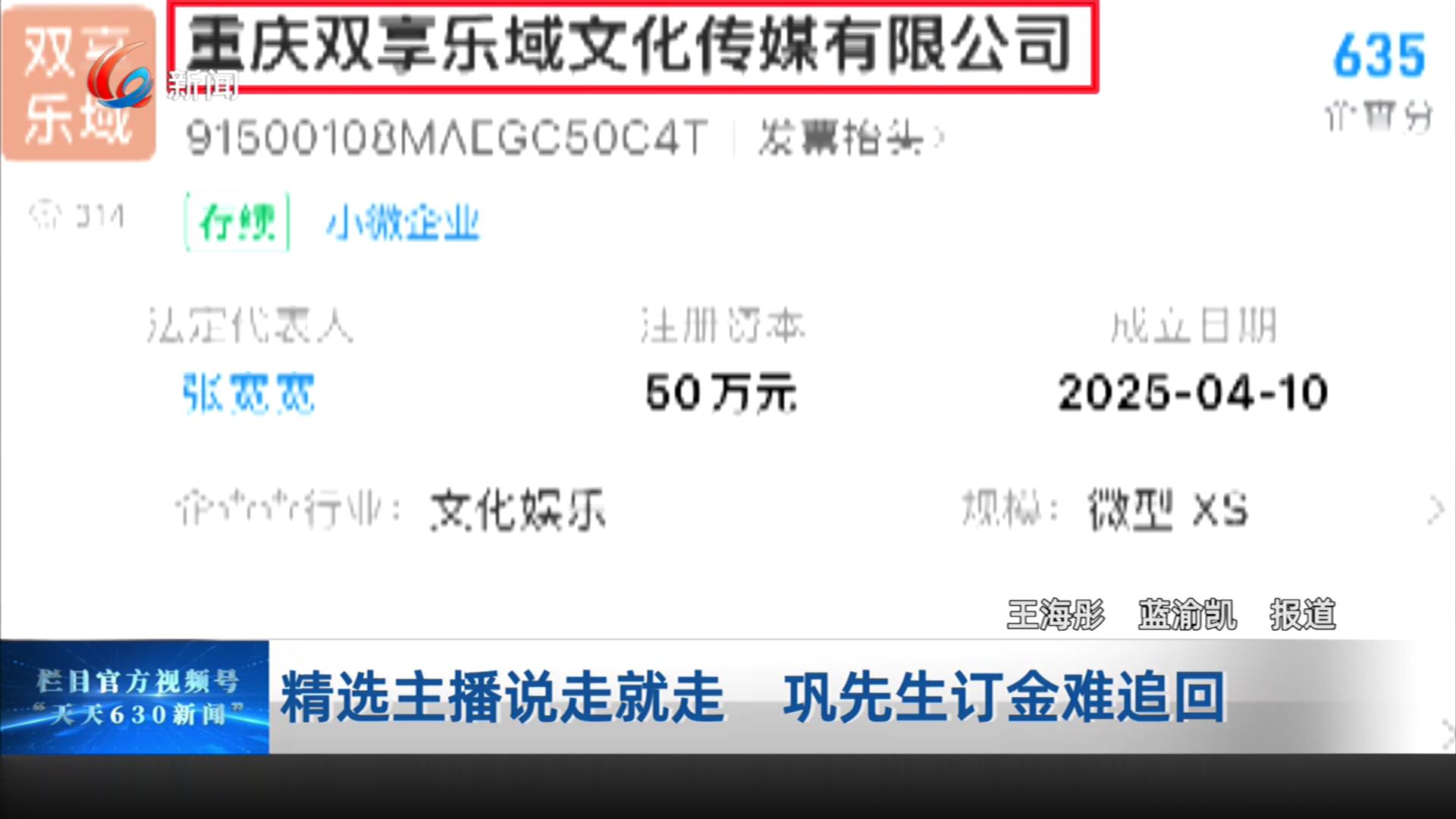 精选主播说走就走 巩先生订金难追回