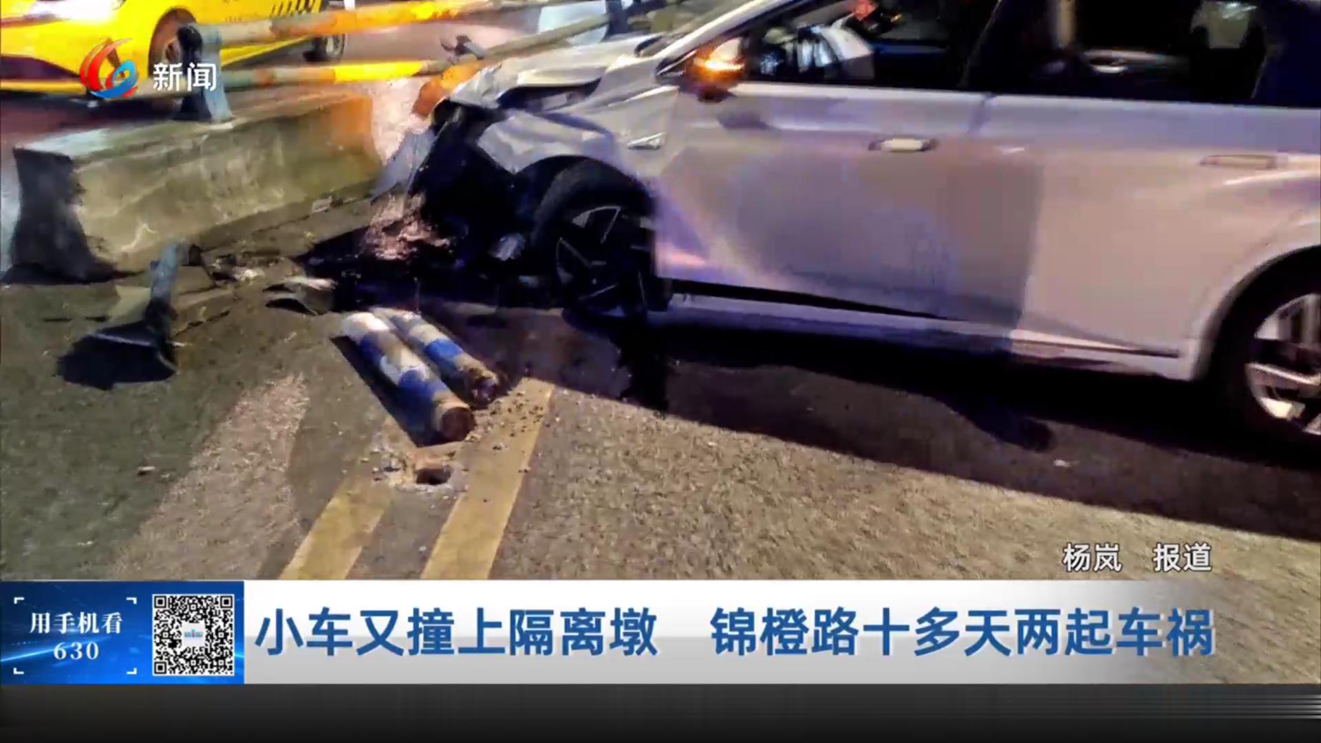 小车又撞上隔离墩 锦橙路十多天两起车祸