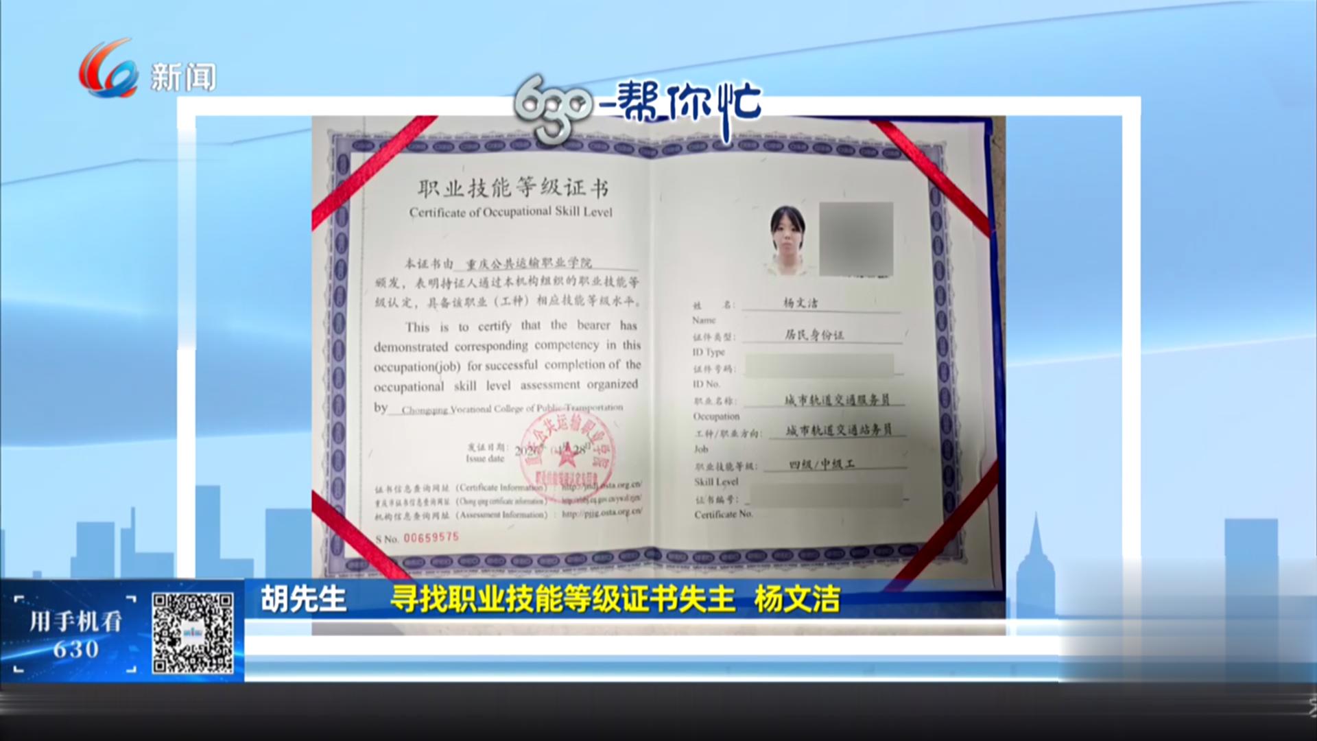 欢迎来到630帮你忙时间,今天我们要为一本职业技能等级证书寻找主人。
