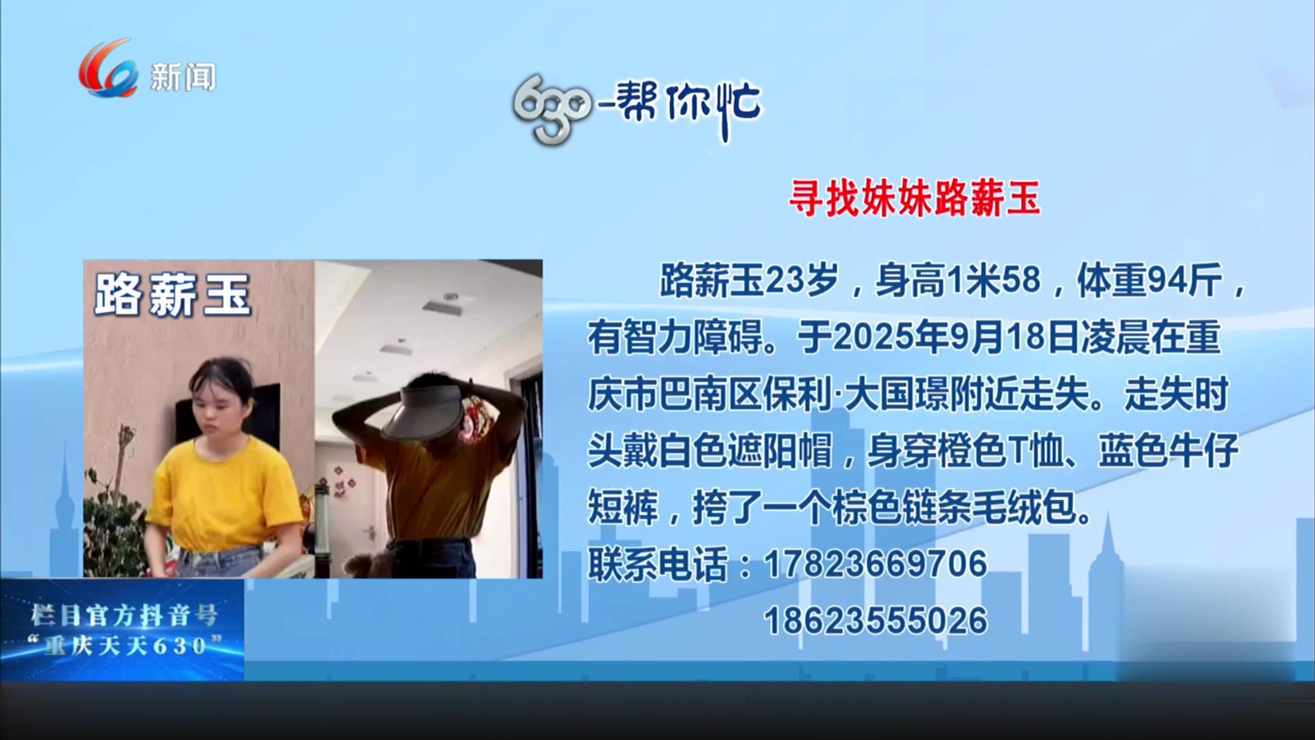 630帮你忙,期待大家来帮忙。今天需要帮忙的是市民路女士,她要寻找昨天走失的妹妹路薪玉。