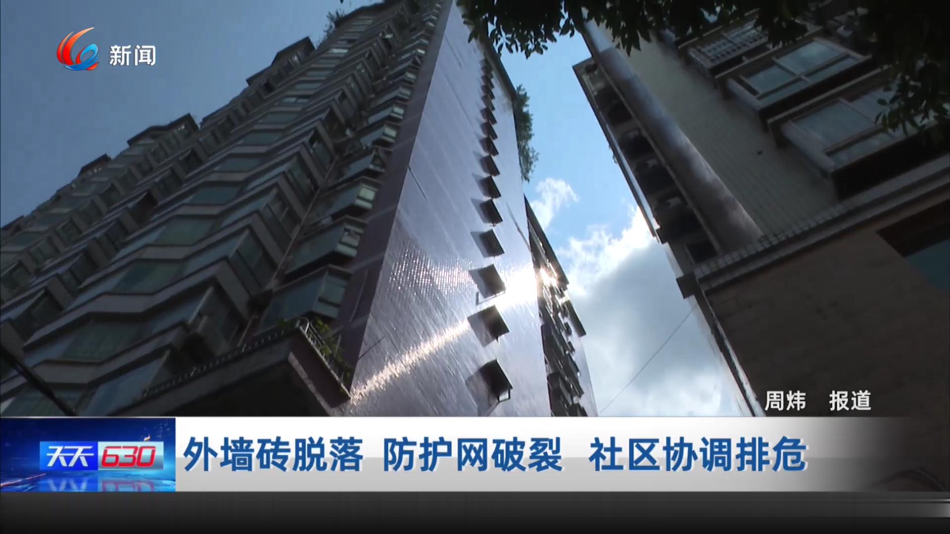 最近,涪陵龙湾花园小区的居民反映,旁边小区的外墙瓷砖经常脱落,之前对方的物业公司还在这里安装了一排防护网。可是如今防护网已经破烂不堪,这让居民们忧心忡忡。