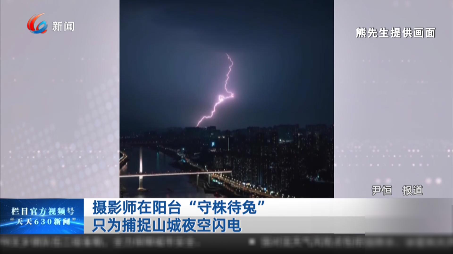 摄影师在阳台“守株待兔” 只为捕捉山城夜空闪电