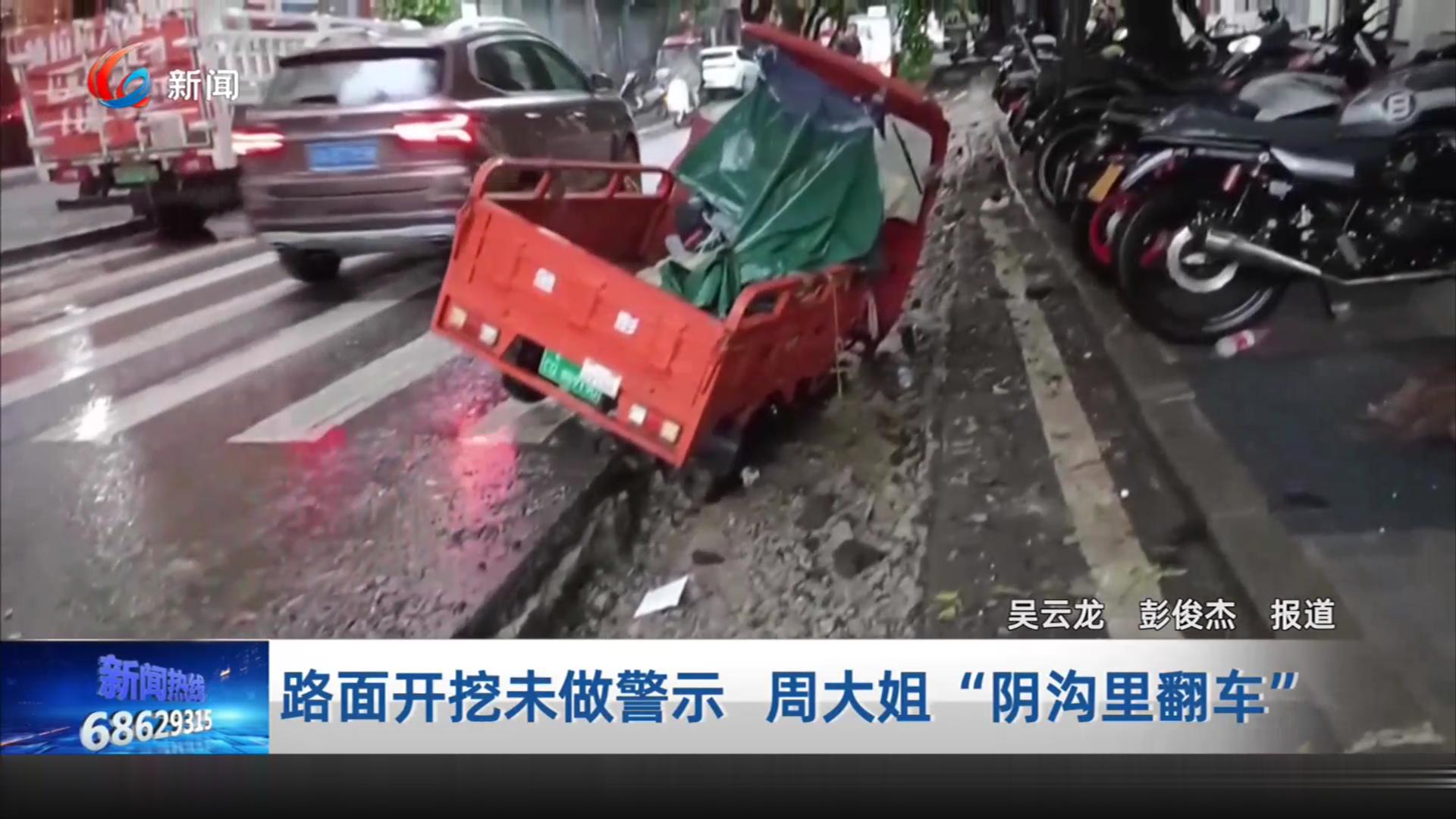 路面开挖未做警示 周大姐“阴沟里翻车”